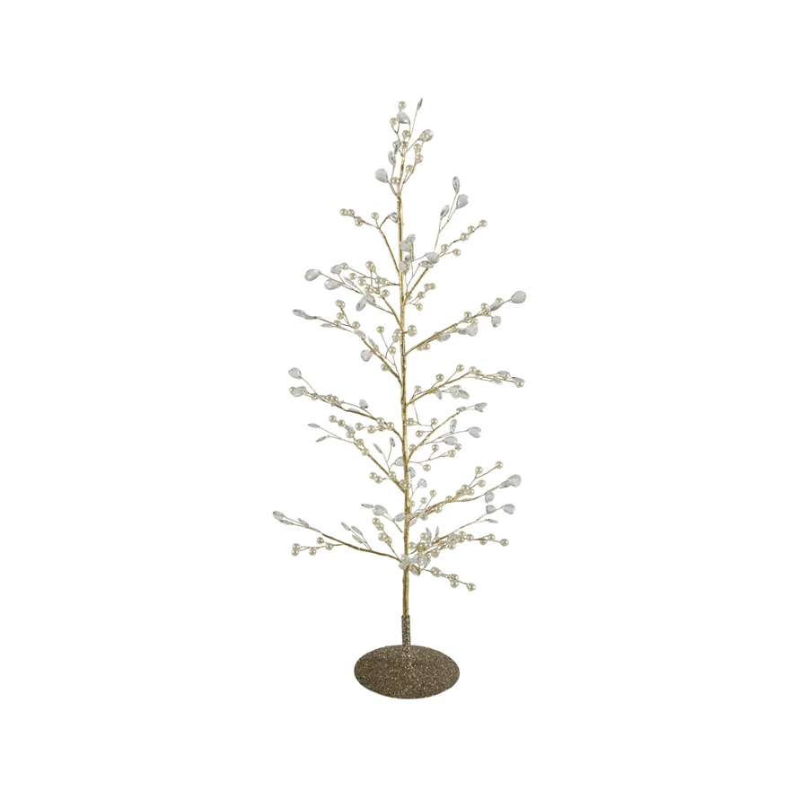 Faux Pearl, Acrylic Jewel & Metal Wire Tree with Glitter Base, Gold Finish