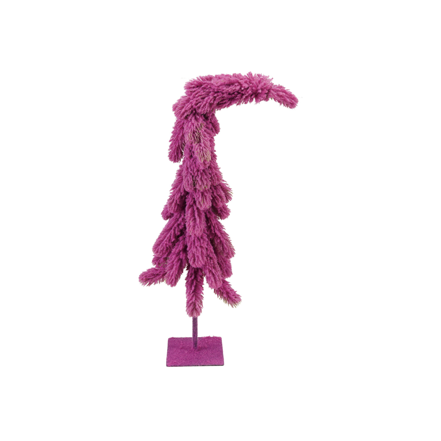 Catalog Name: 13"L x 8-3/4"W x 25-1/2"H Flocked Plastic Curved Tree w/ Metal Base, Purple