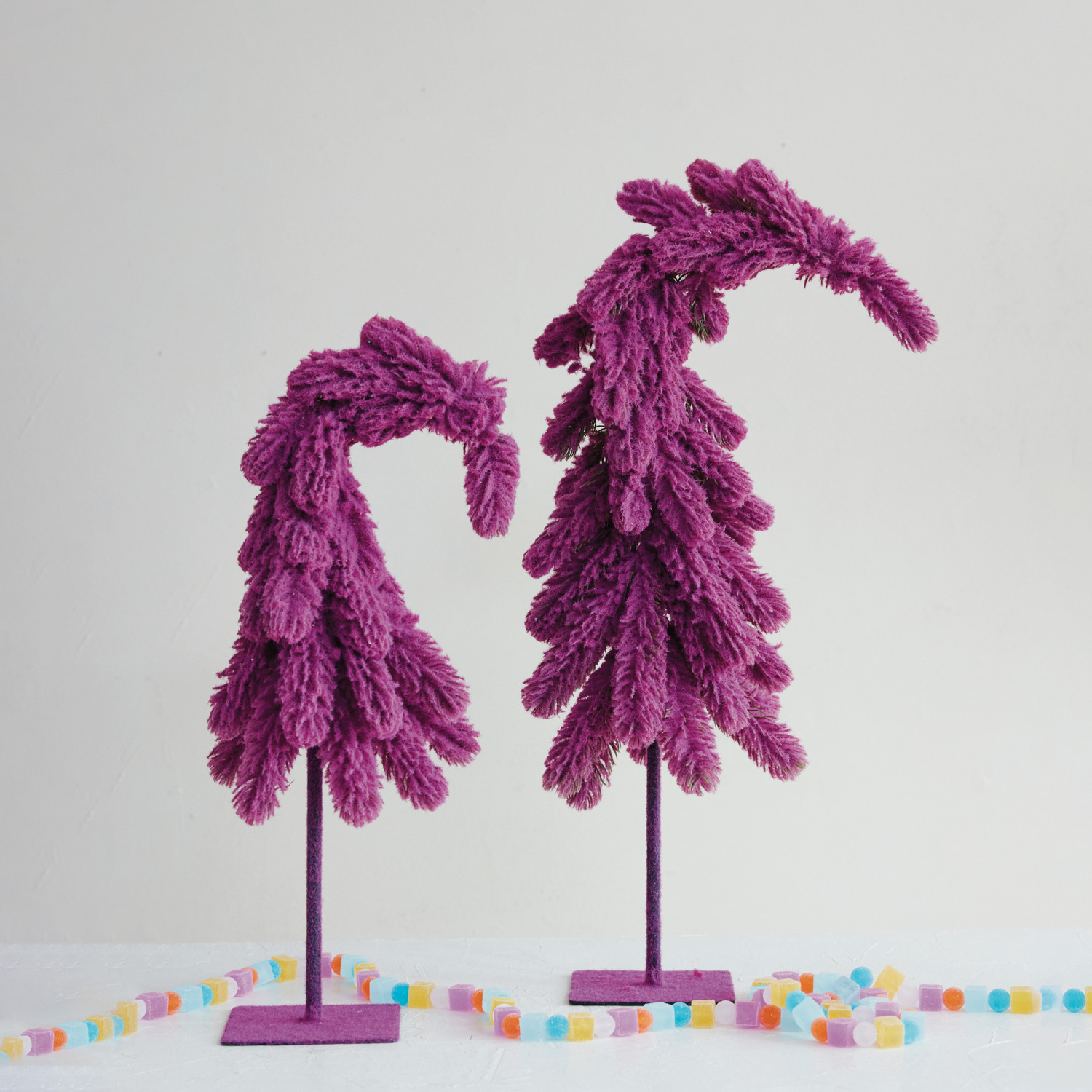 Flocked Plastic Curved Tree with Metal Base, Purple