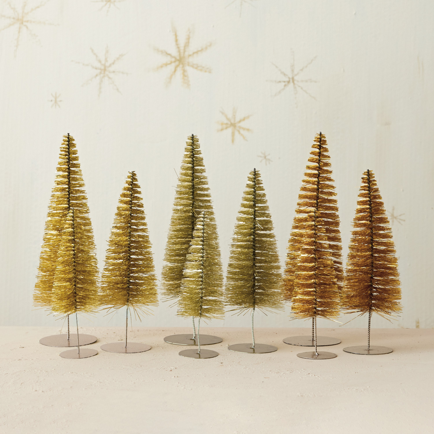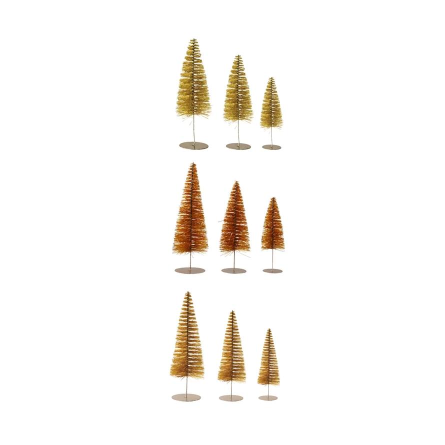 Plastic Bottle Brush Trees, Set of 3, 3 Colors