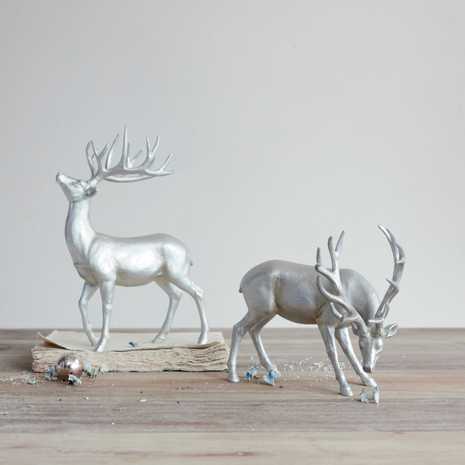 Catalog Name: 8-1/2"L x 3-1/4"W x 12"H Resin Deer, Silver Finish, 2 Styles