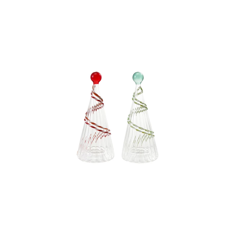 Glass Fluted Tree with Embossed Swirl & Ball Topper, 2 Colors