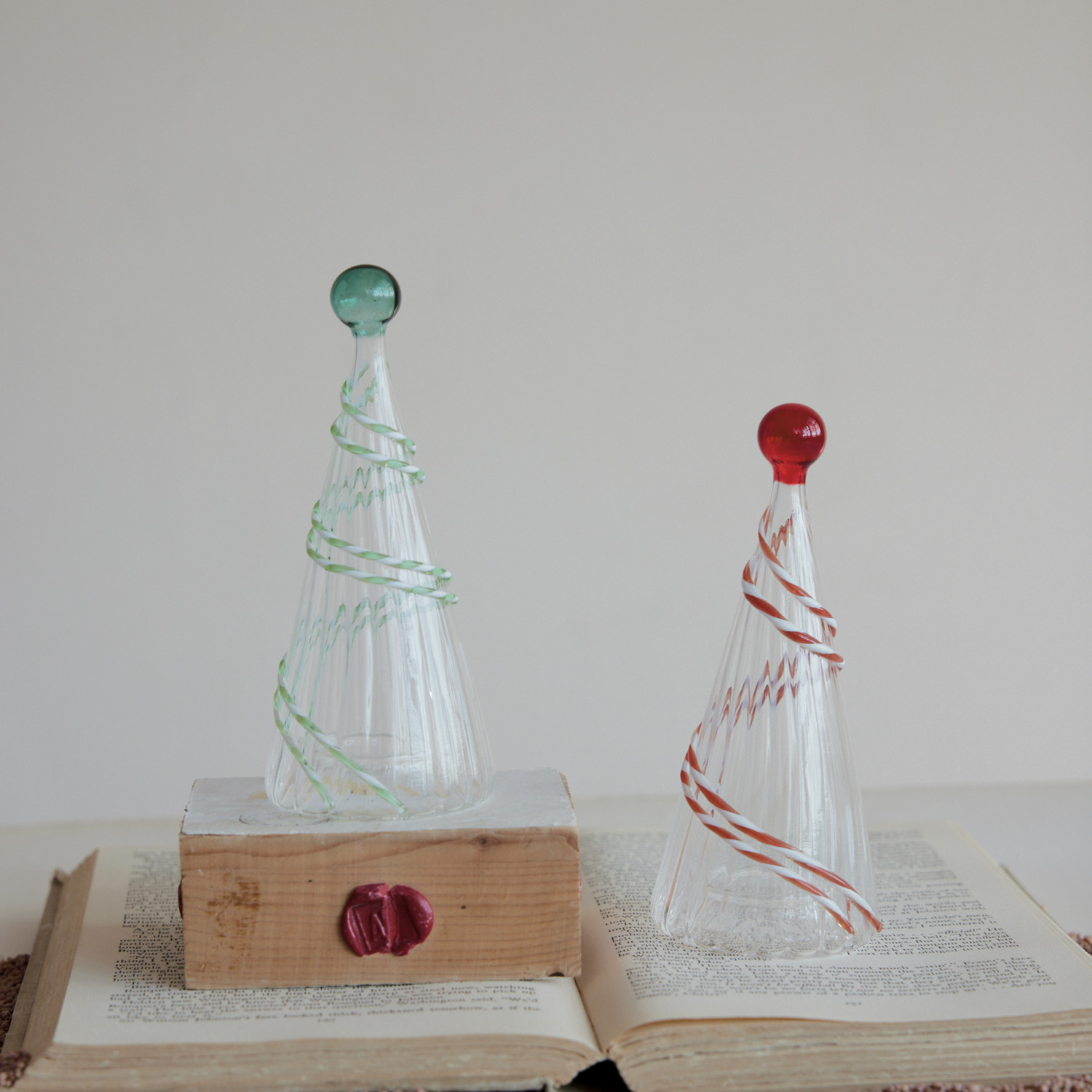 Glass Fluted Tree with Embossed Swirl & Ball Topper, 2 Colors
