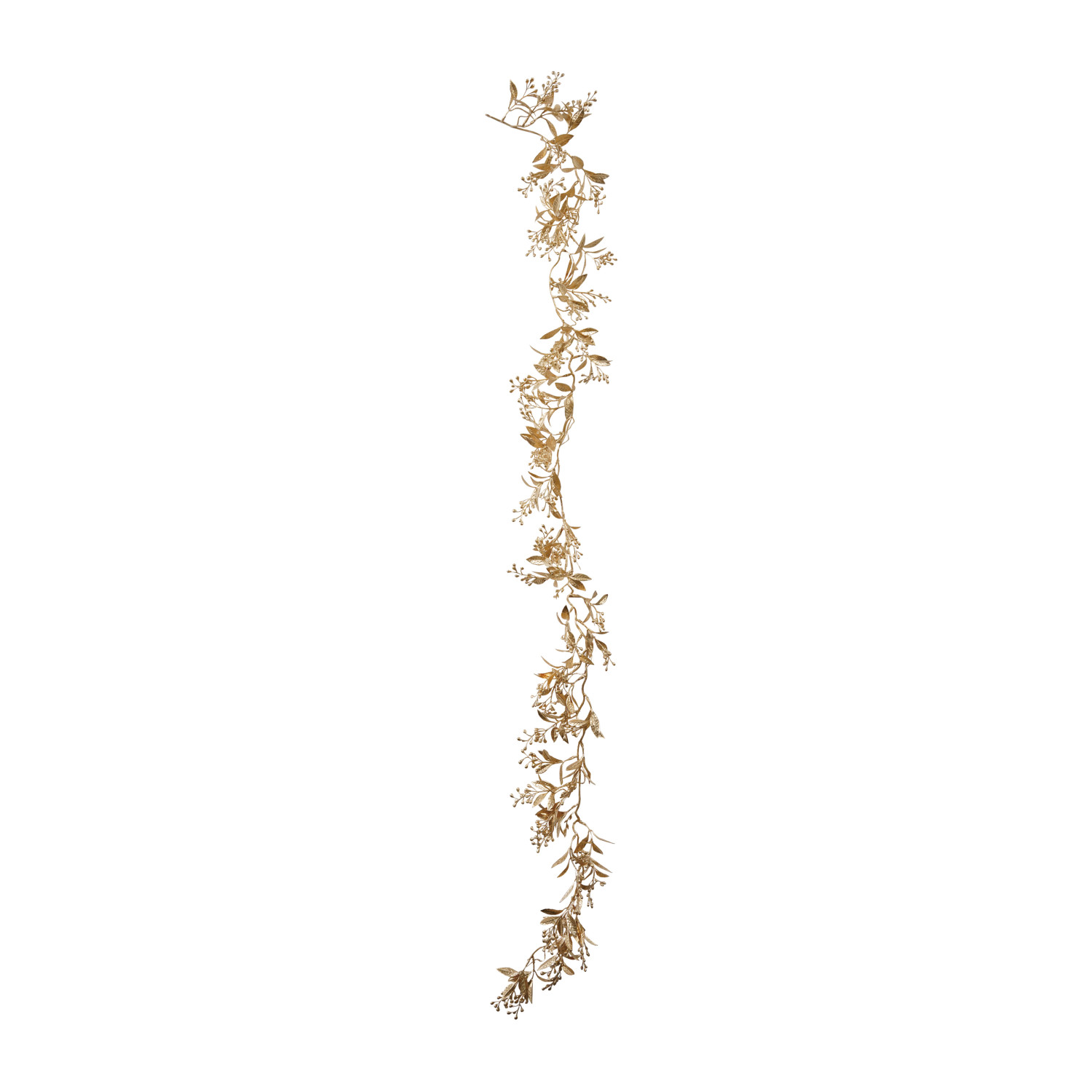 Catalog Name: 63"L x 6-1/4"H Faux Leaves & Berries Garland, Antique Gold Finish