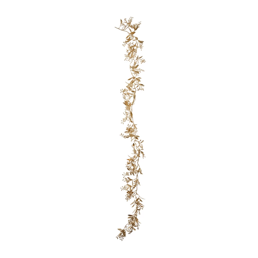Faux Leaves & Berries Garland, Antique Gold Finish