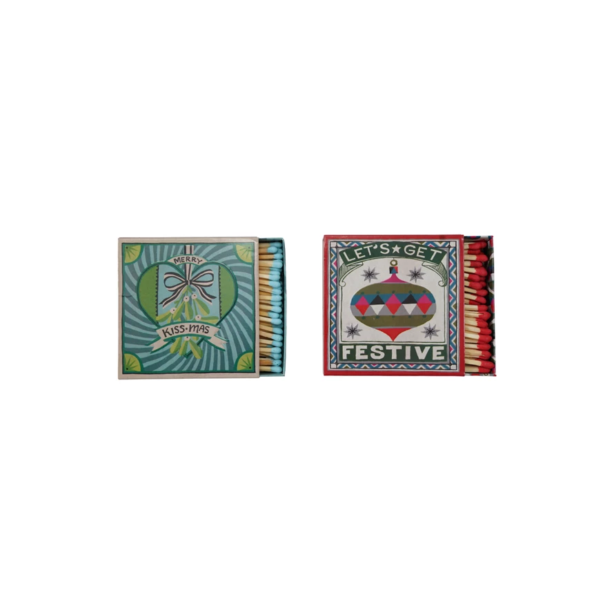Catalog Name: 3-1/4"L Safety Matches in Embossed Matchbox w/ Holiday Saying & Design, Multi Color, 2 Styles ©