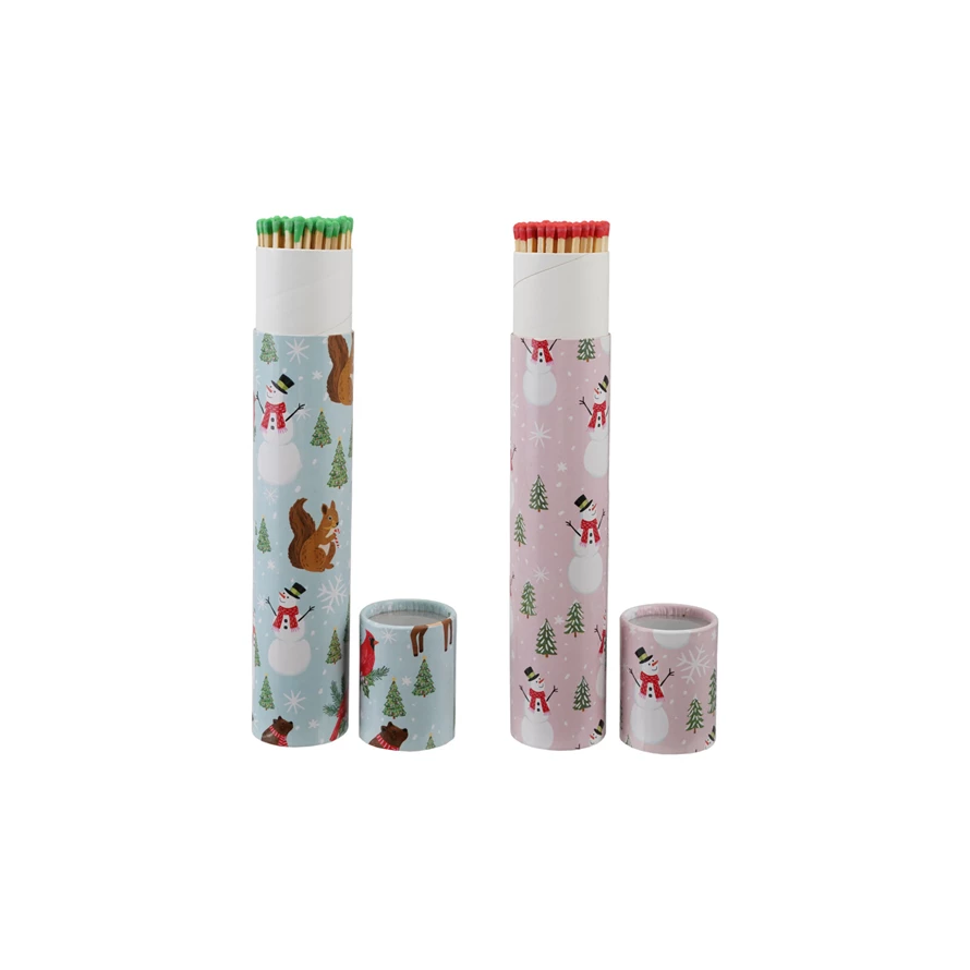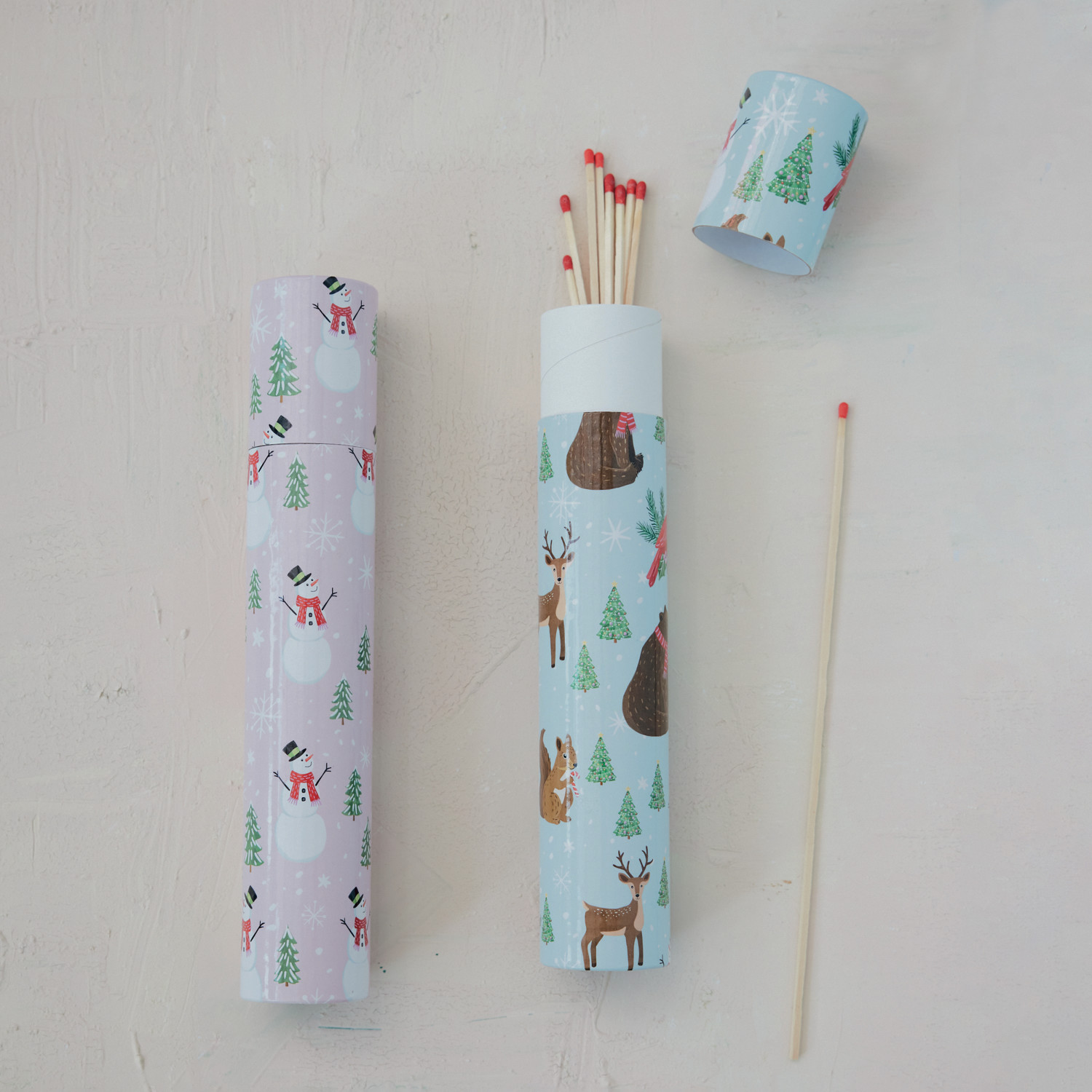 Catalog Name: 11-3/4"L Safety Fireplace Matches in Tube Matchbox w/ Holiday Pattern, Multi Color, 2 Styles ©