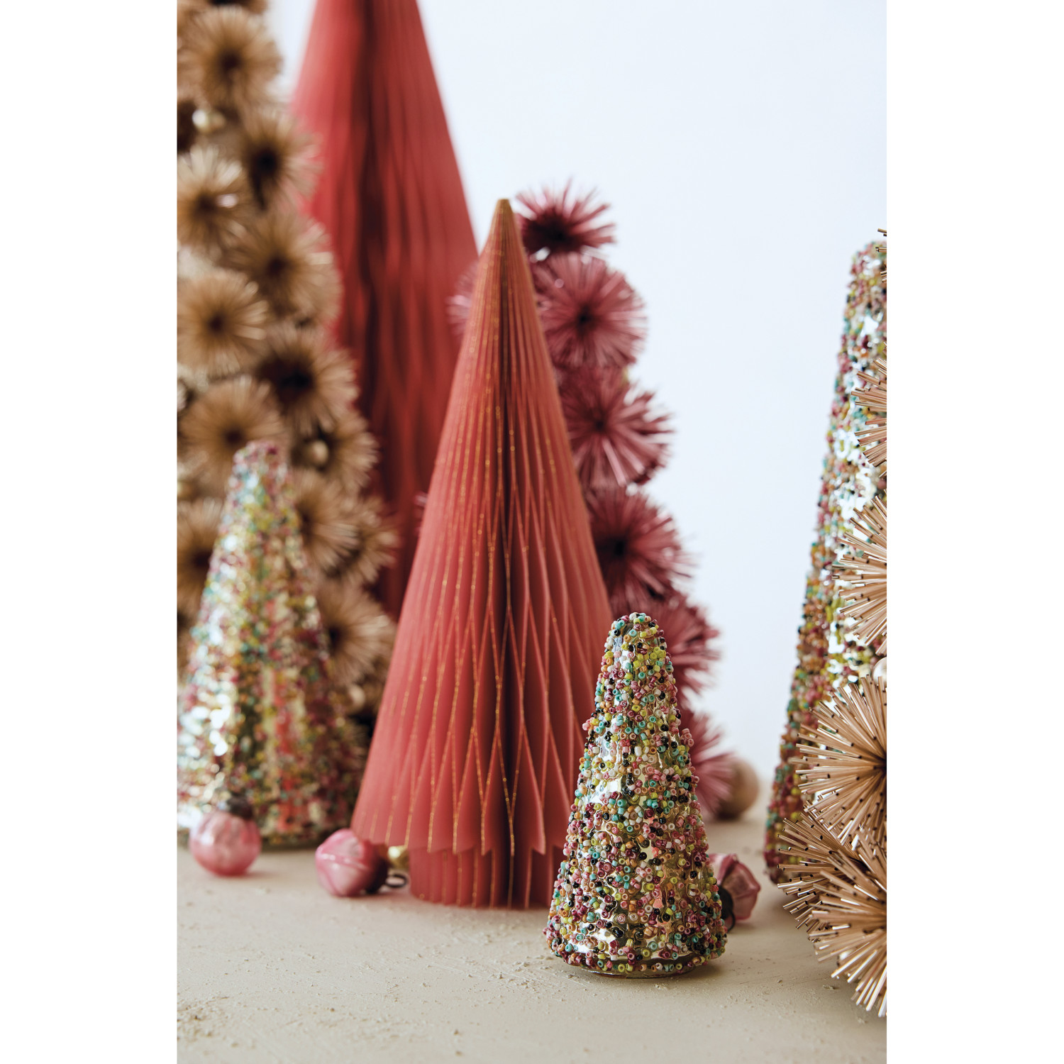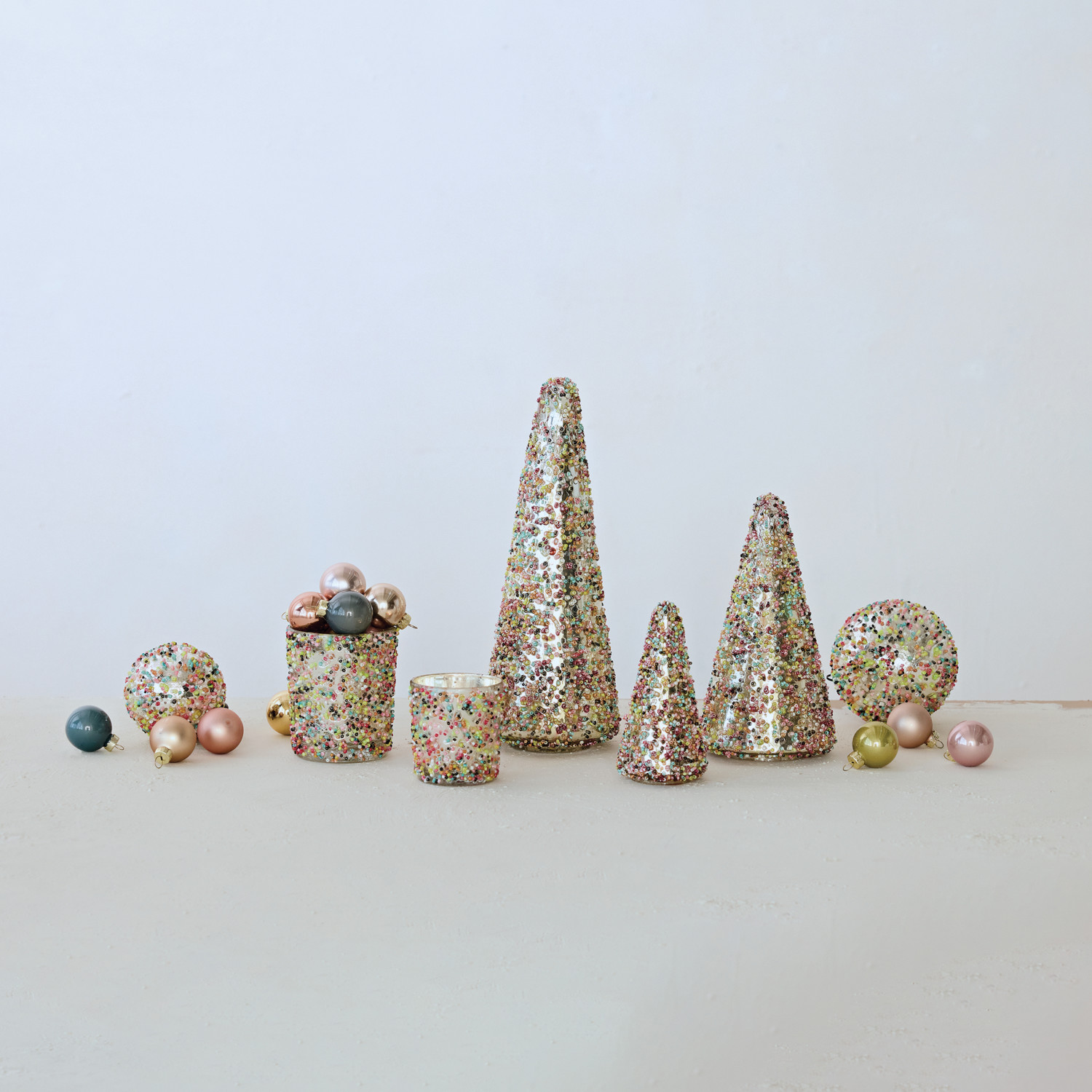 Catalog Name: 2-3/4" Round x 5-1/4"H Mercury Glass Tree w/ Beads, Multi Color