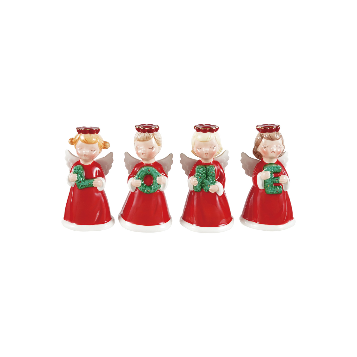 Ceramic Vintage Reproduction Angels with Letter Shaped Wreaths "Noel", Set of 4