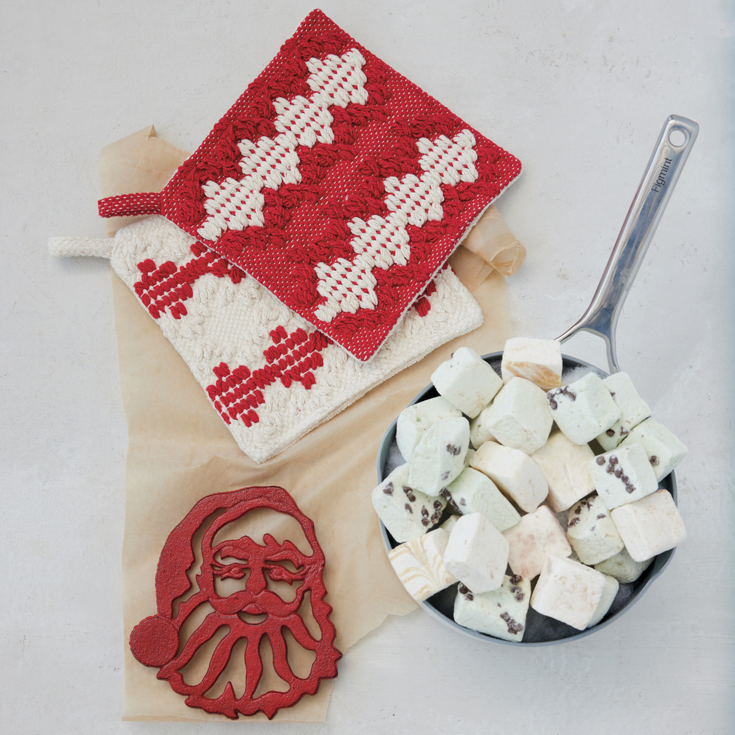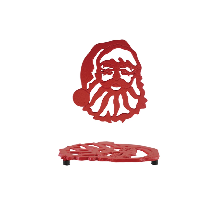 Catalog Name: 7"L x 6-1/4"W Cast Iron Santa Head Shaped Trivet, Red
