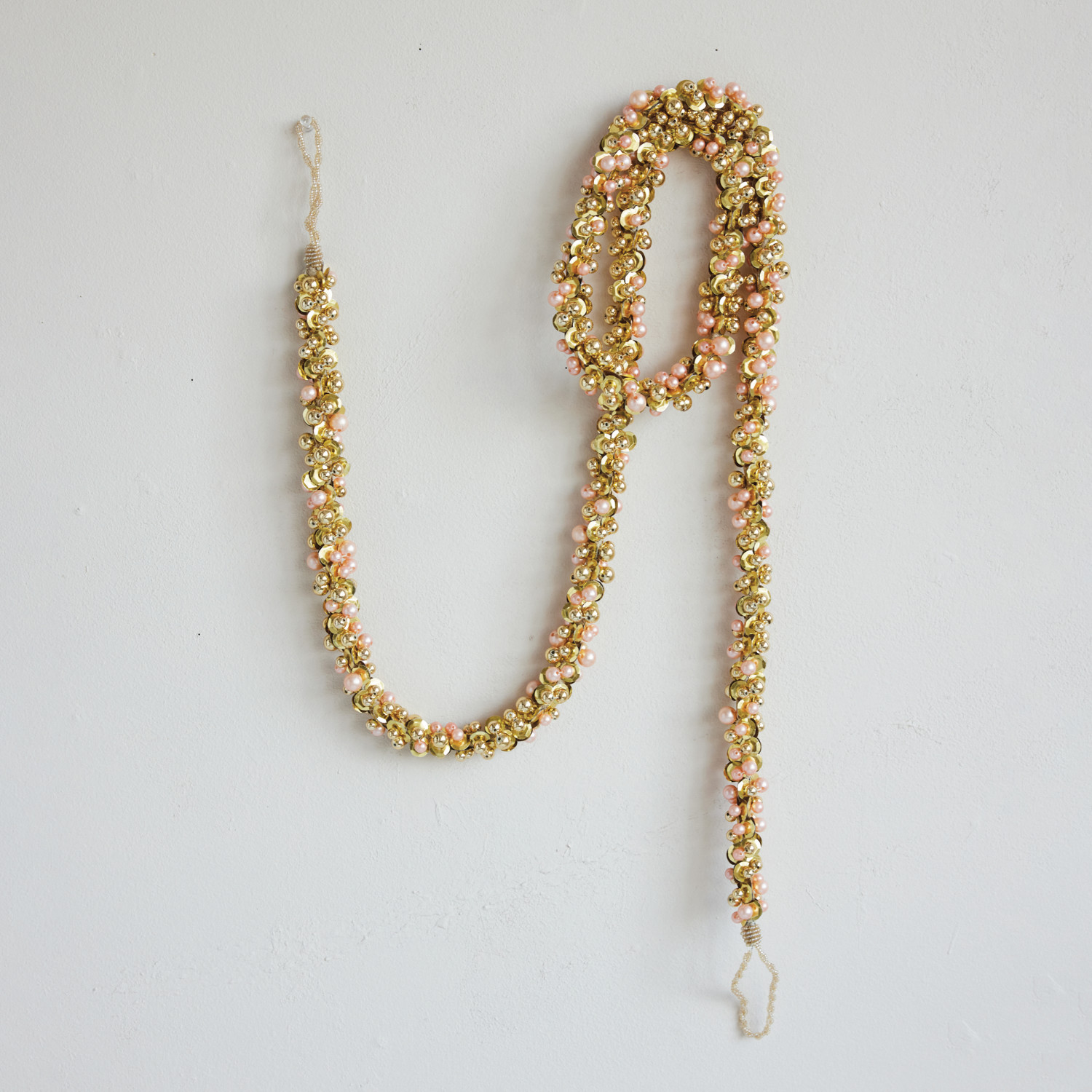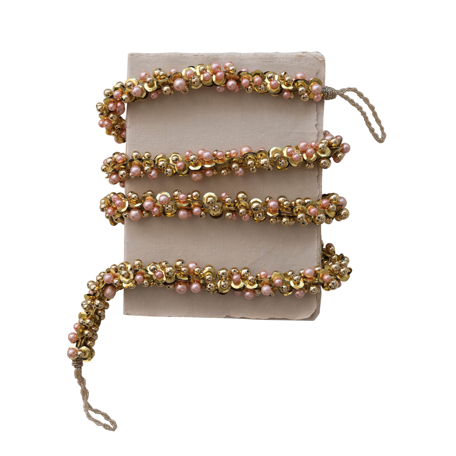 Faux Pearl & Glass Beaded Garland, Gold Finish & Pink