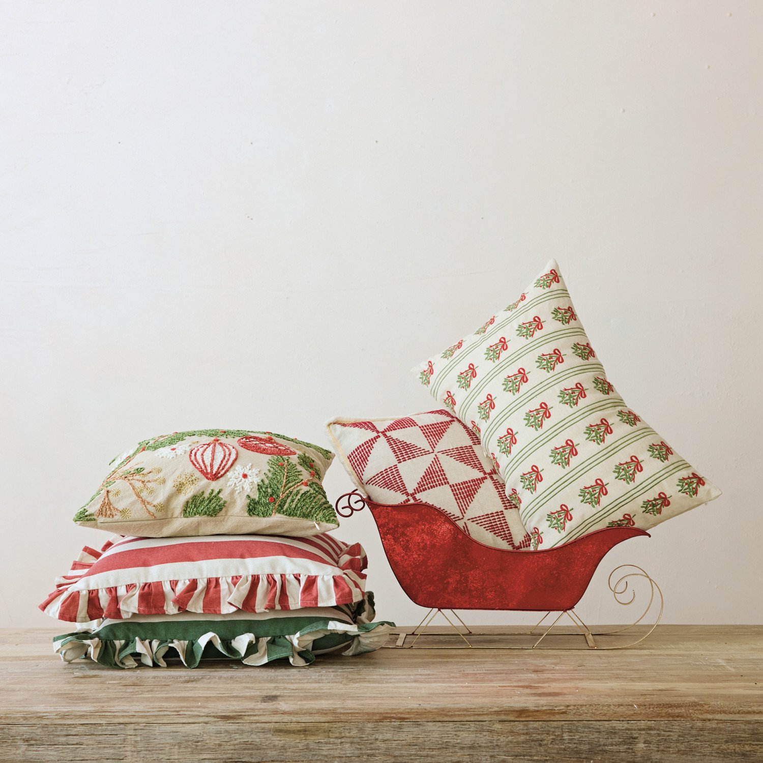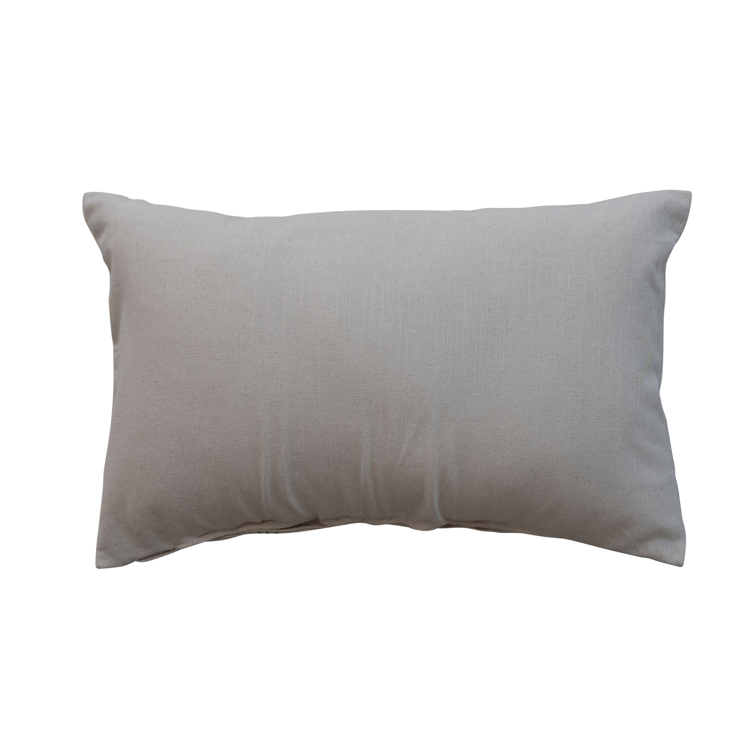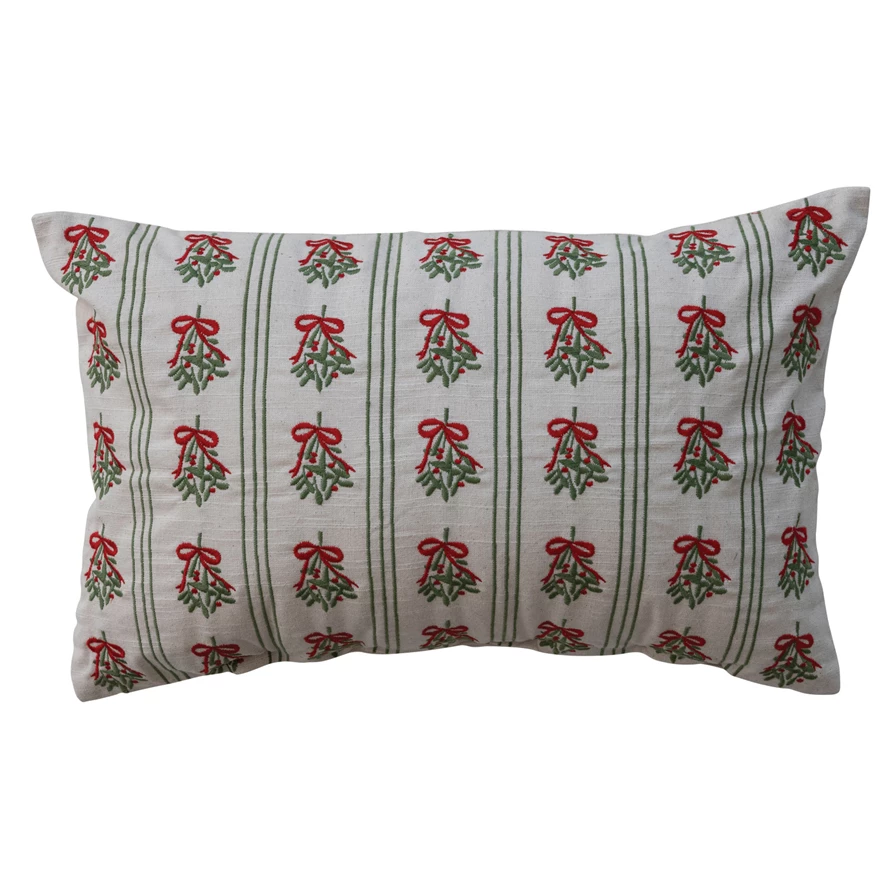 Cotton Lumbar Pillow with Mistletoe Pattern, Stripes & Embroidery