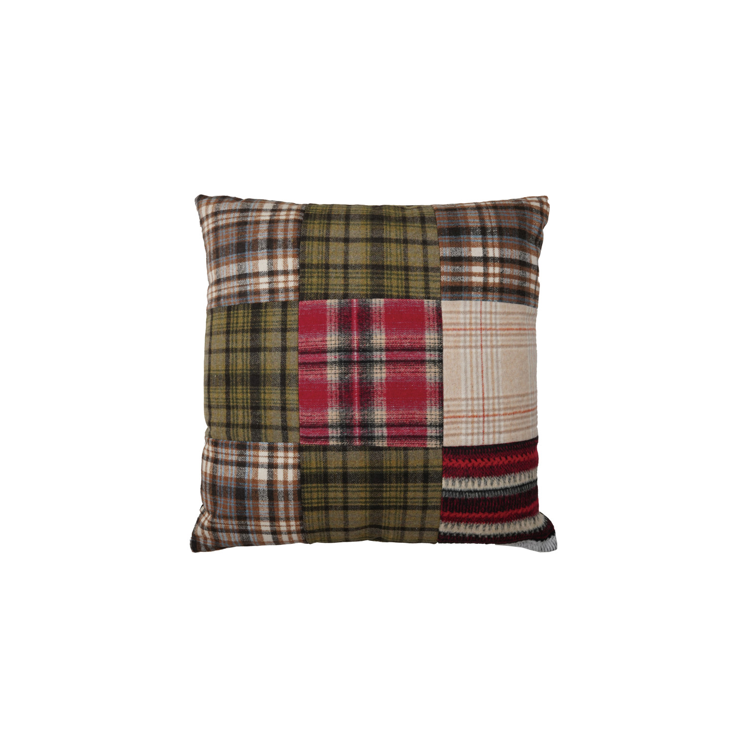 20" Square Fabric Flannel Pillow with Patchwork Plaid Pattern