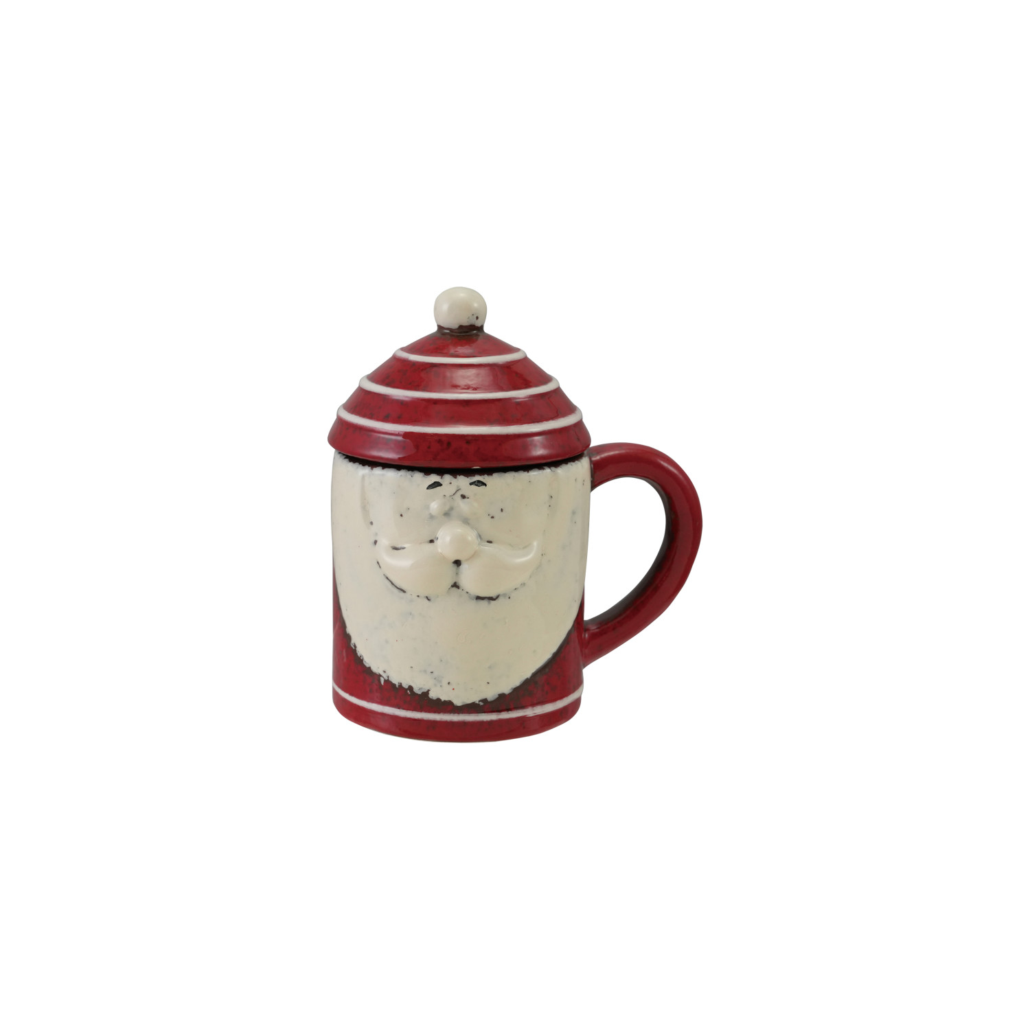 12 oz. Hand-Painted Ceramic Santa Head Shaped Mug with Hat Shaped Lid (Each One Will Vary)
