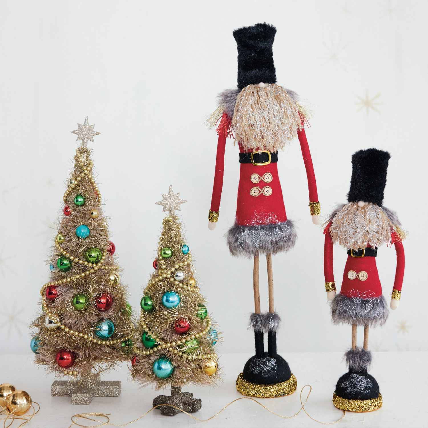Catalog Name: 4-3/4"W x 13-3/4"H Fabric Soldier w/ Glitter, Faux Fur & Twig Legs, Multi Color