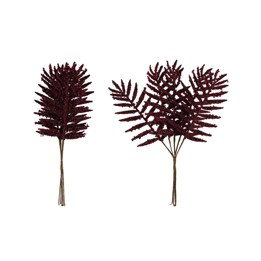 Faux Leaf Pick with Beads, Burgundy (Contains 5 Pieces)