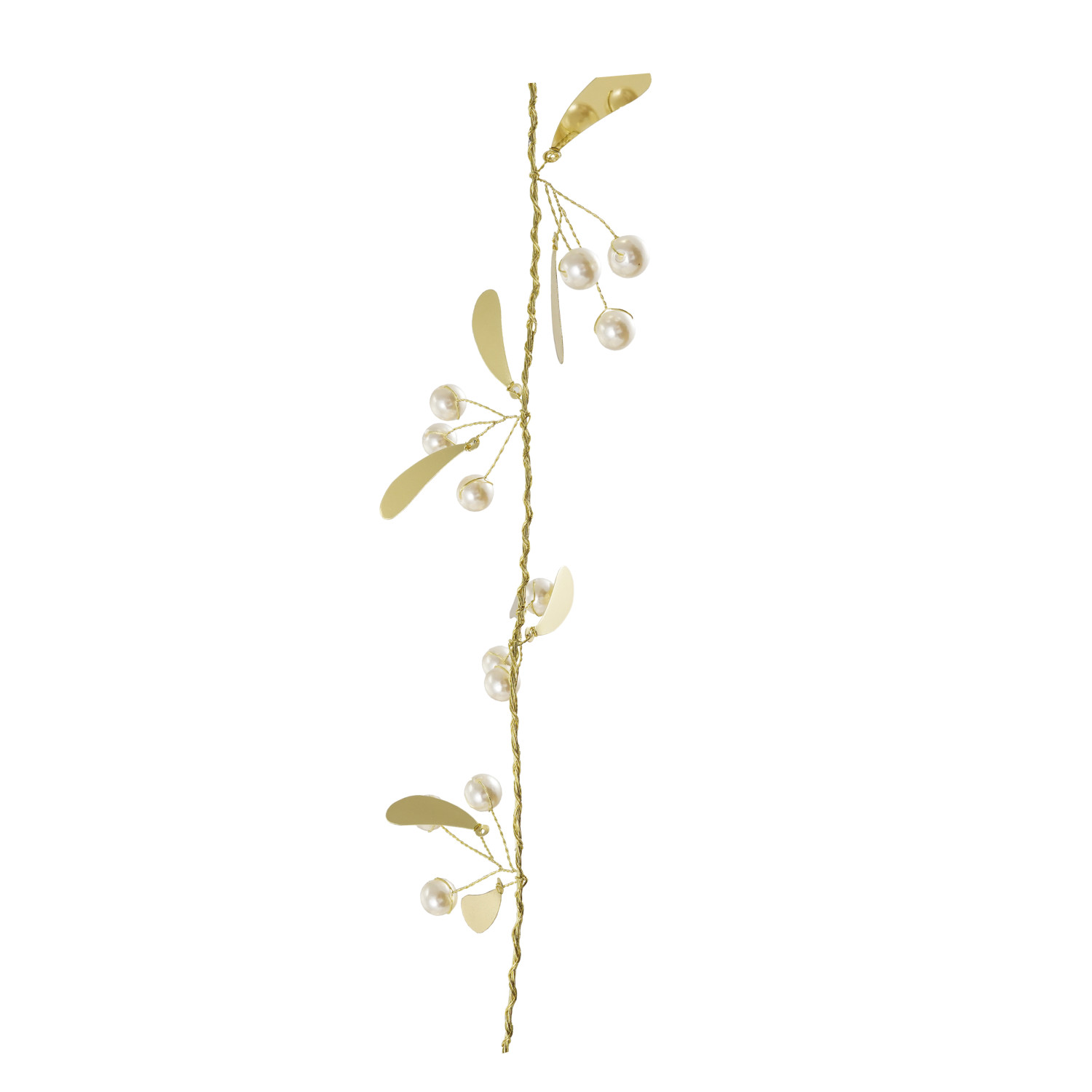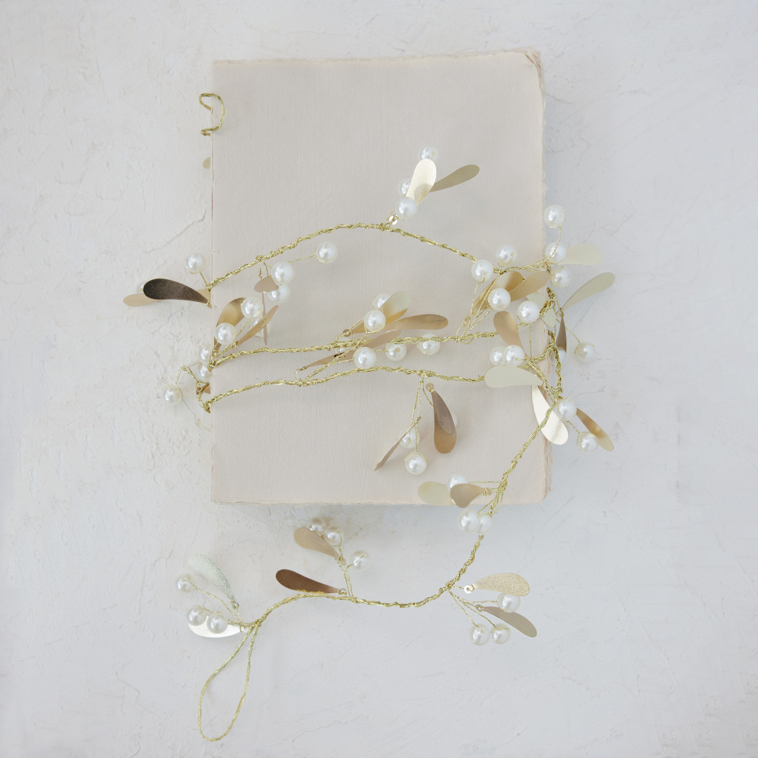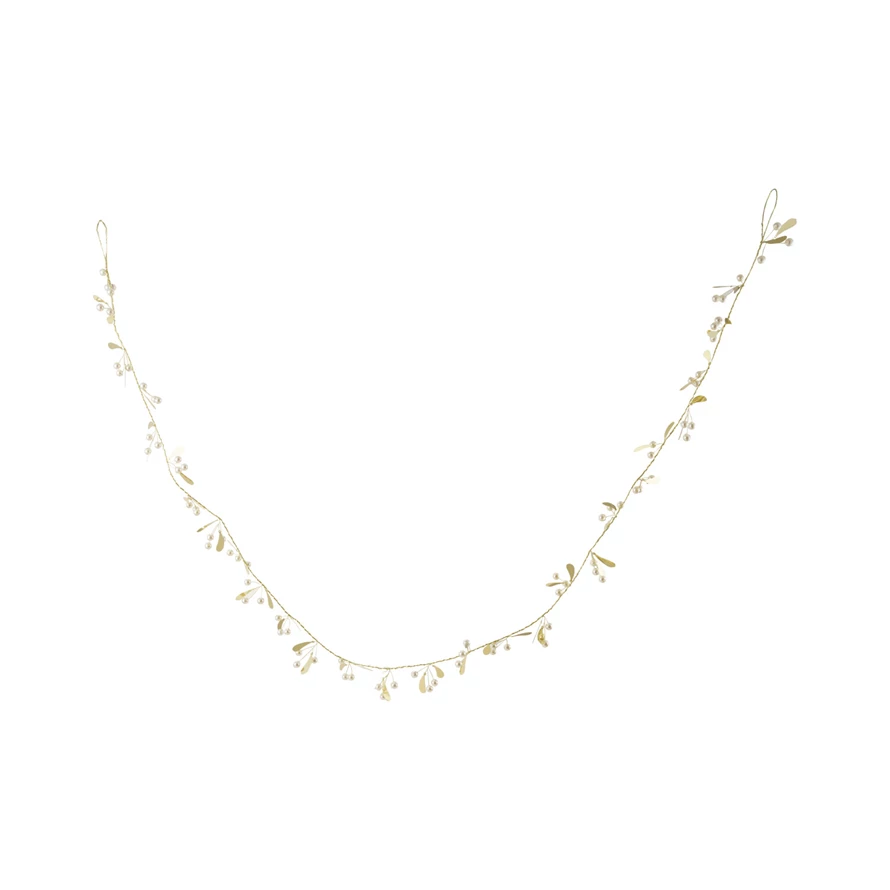 Metal Mistletoe Garland with Faux Pearls, Gold Finish
