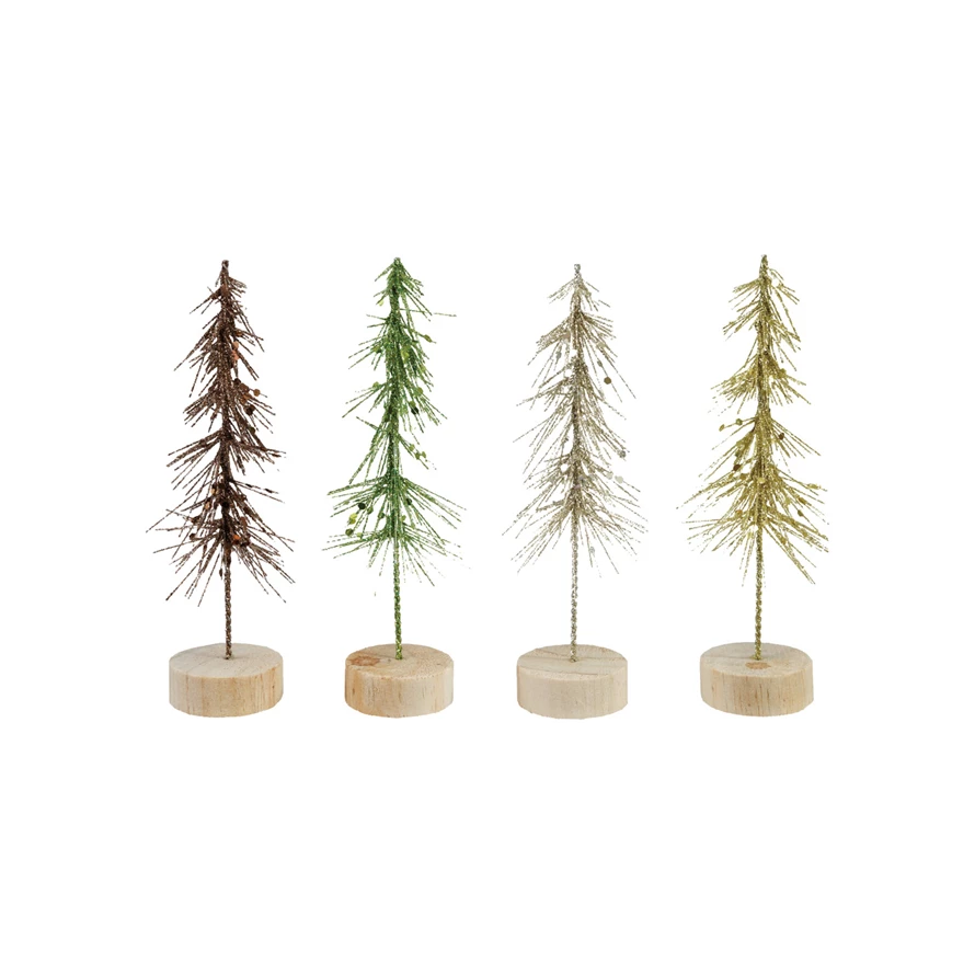 Plastic Tree with Glitter & Wood Base, 4 Colors