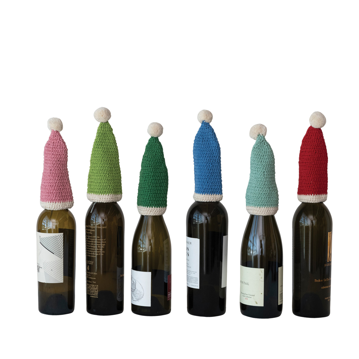 Cotton Crocheted Hat Bottle Topper, 6 Colors