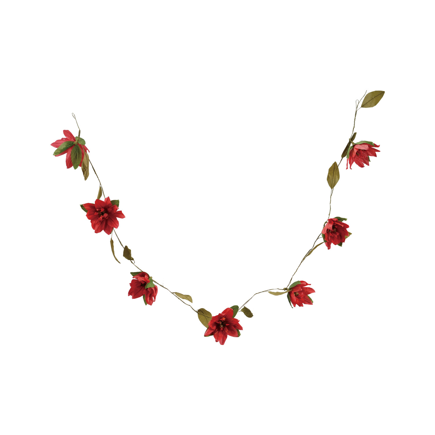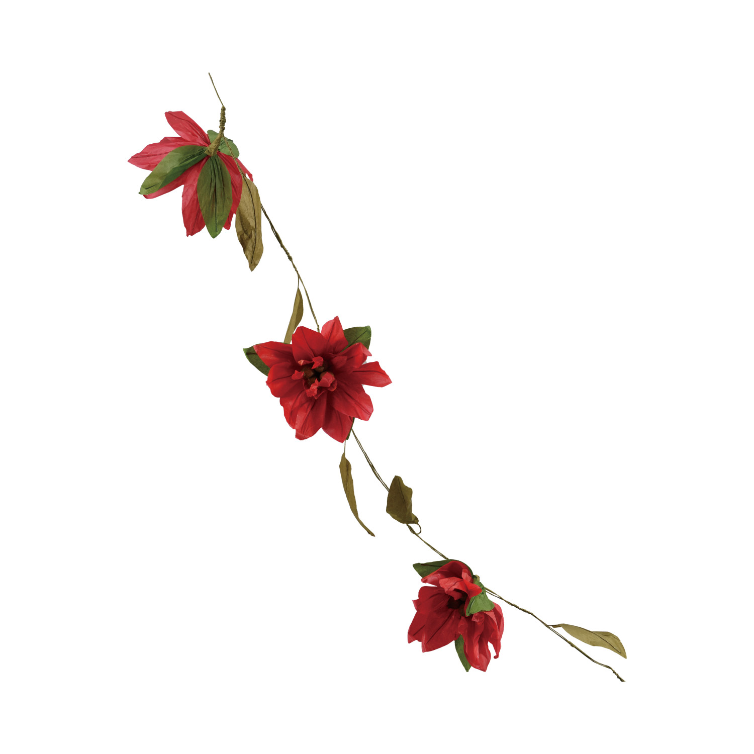 Handmade Paper Poinsettia Garland, Red & Green