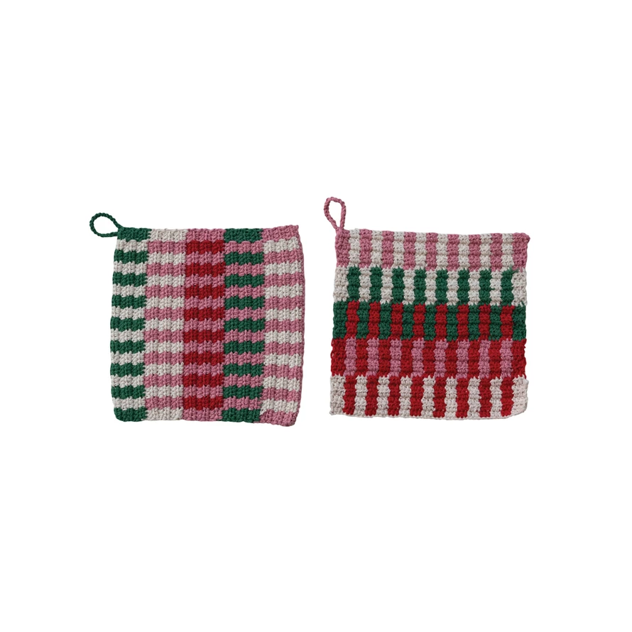 Catalog Name: 8" Square Cotton Crocheted Pot Holder w/ Pattern, Multi Color, 2 Styles