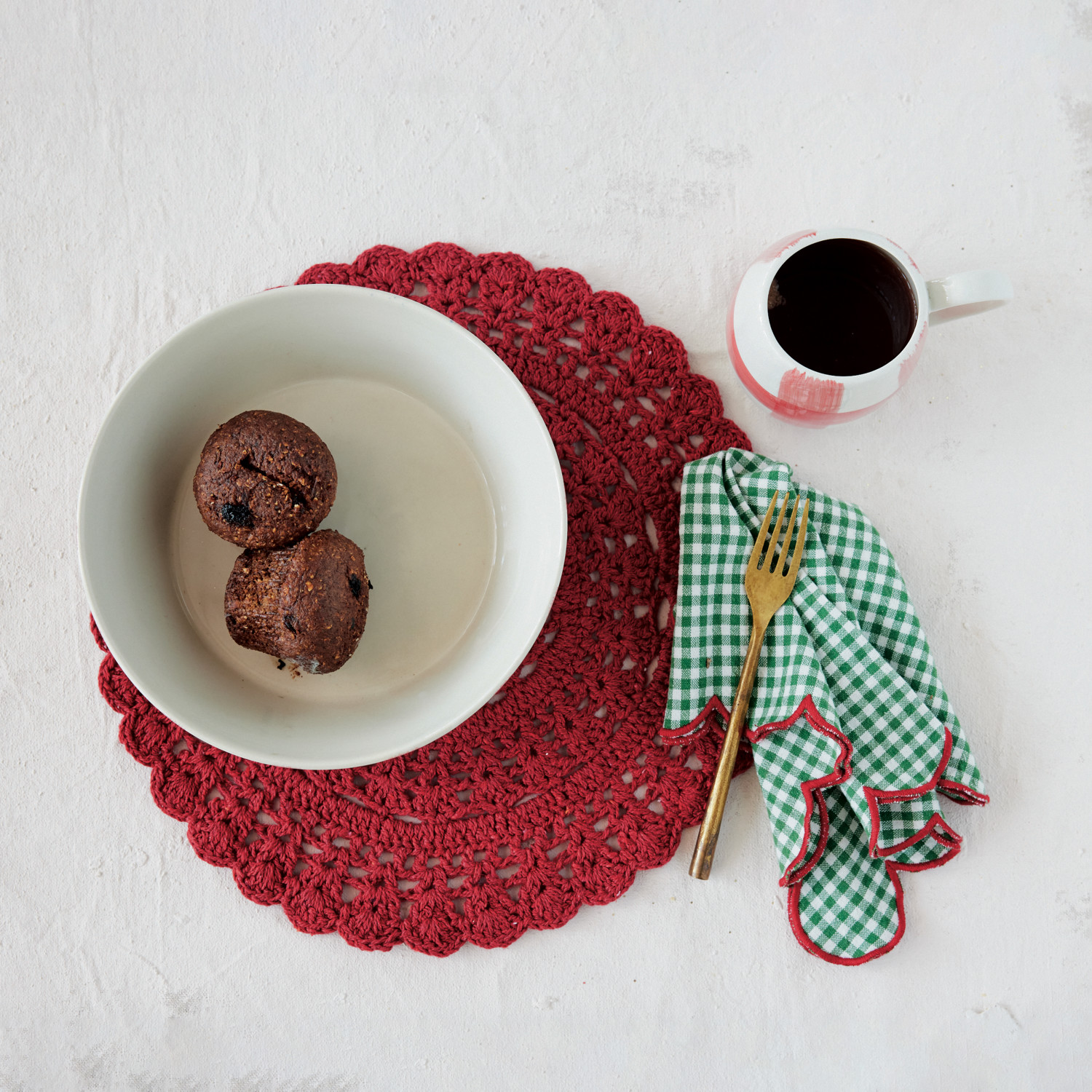 Catalog Name: 15" Round Cotton Crocheted Placemat, Red