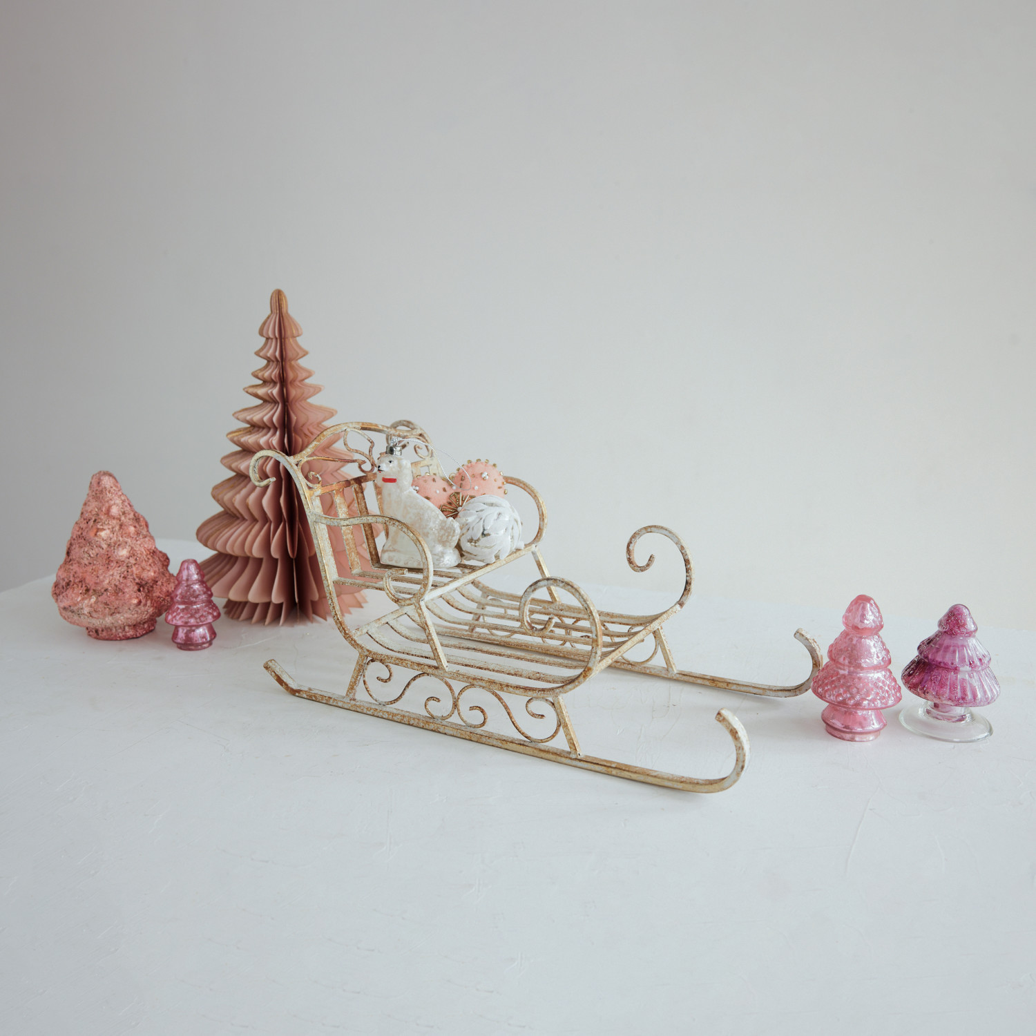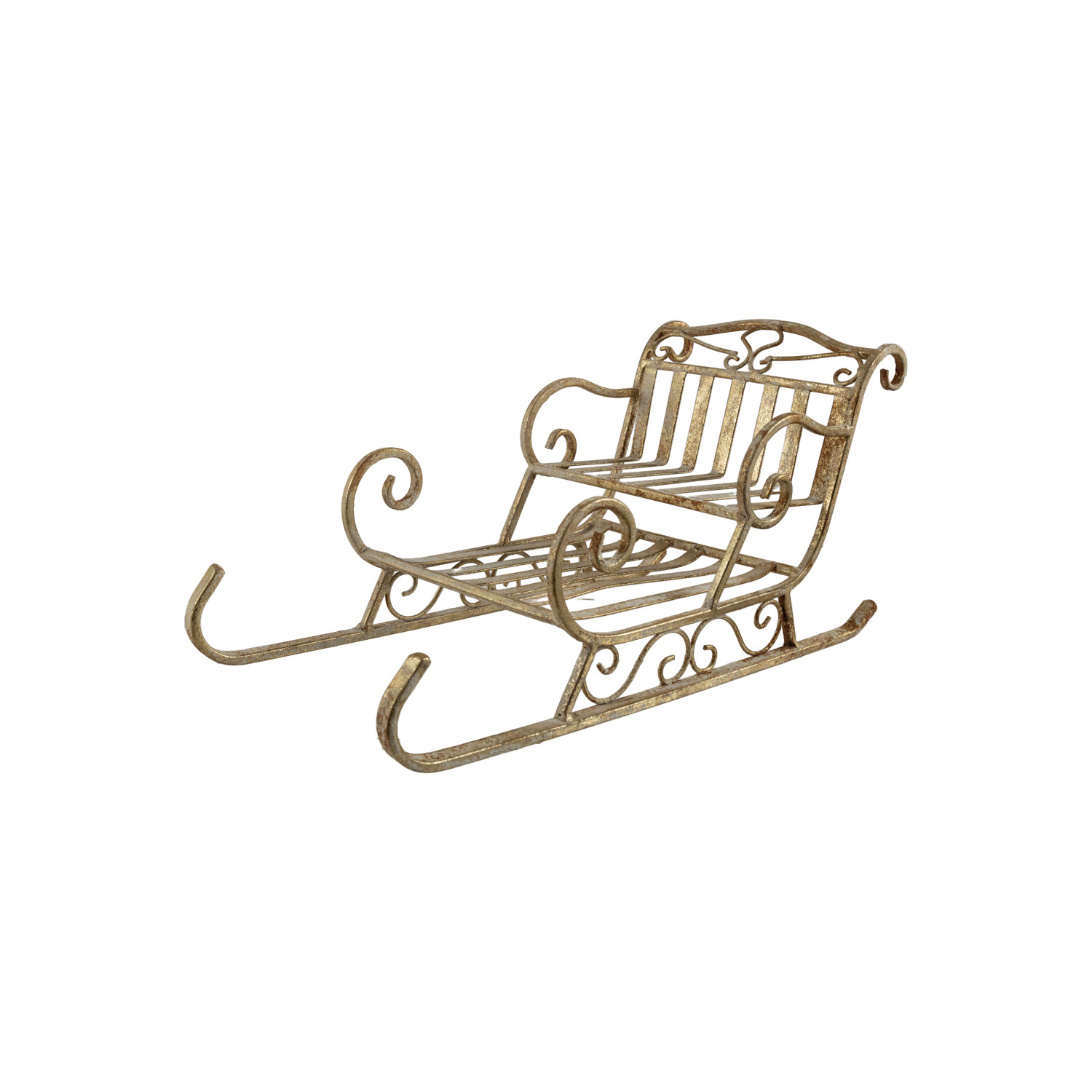 Metal Sleigh, Distressed Gold Finish & Cream Color