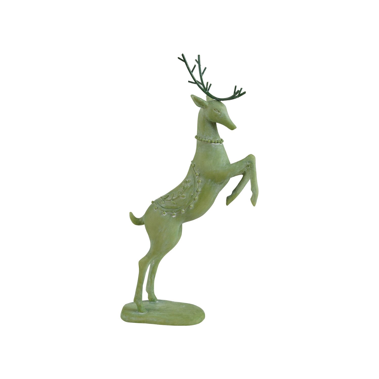 Embossed Resin Deer with Metal Antlers, Green ©