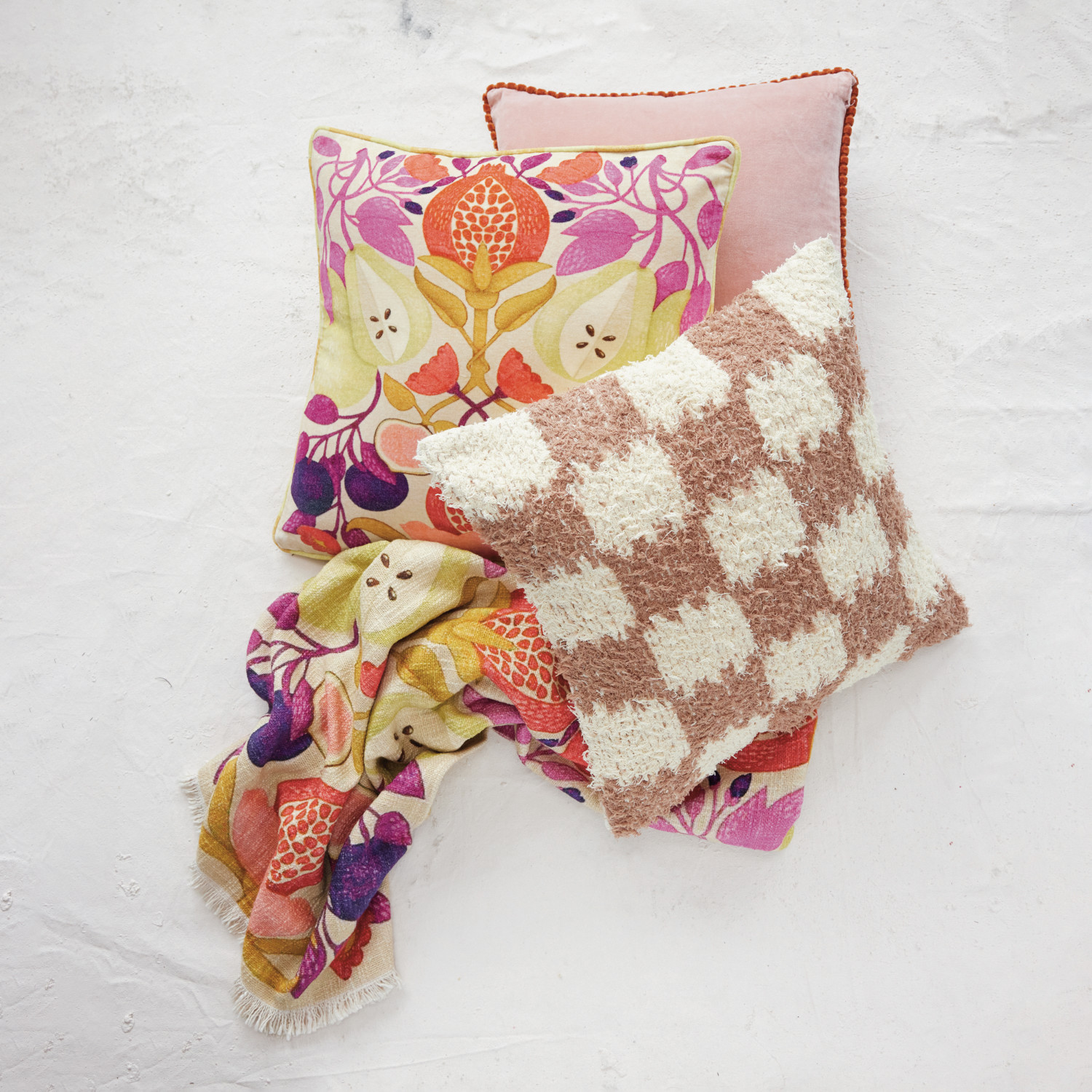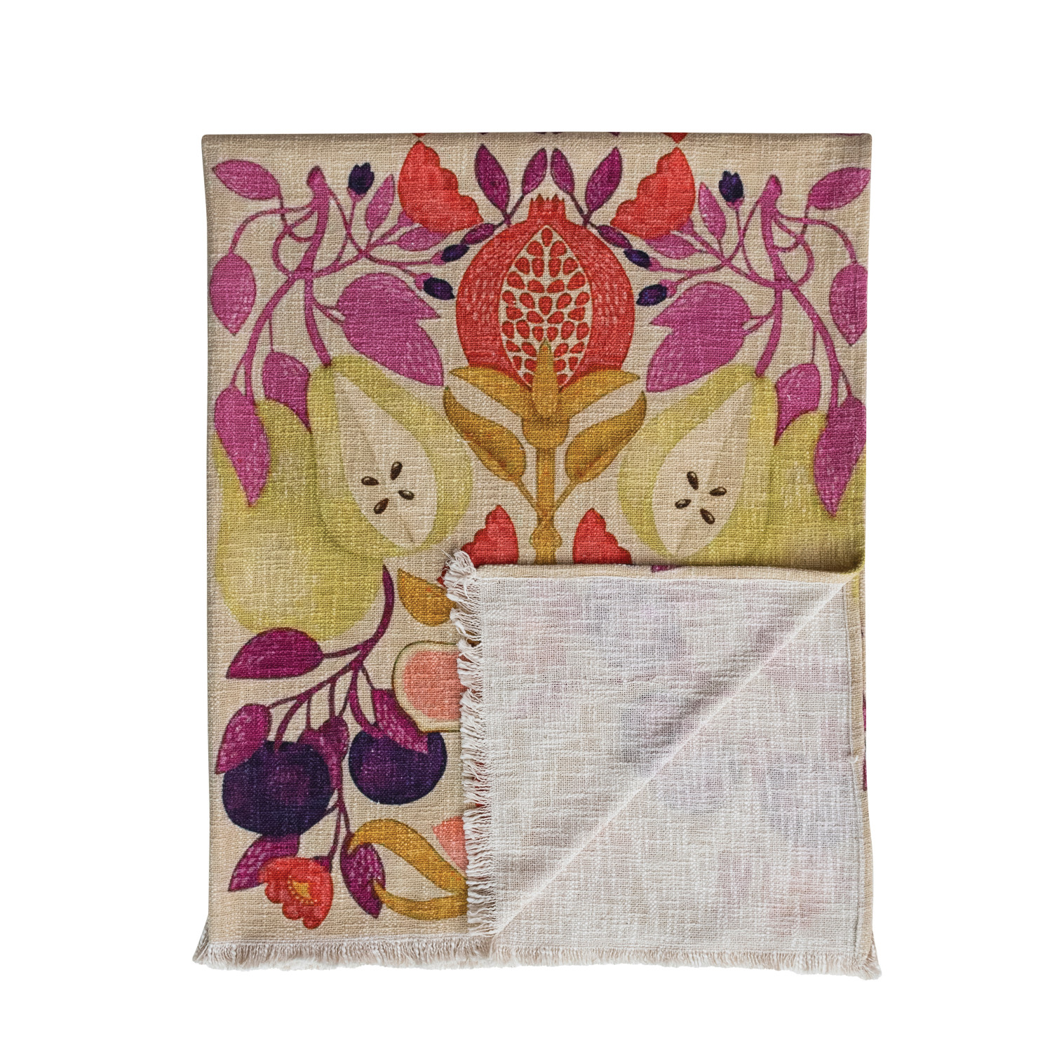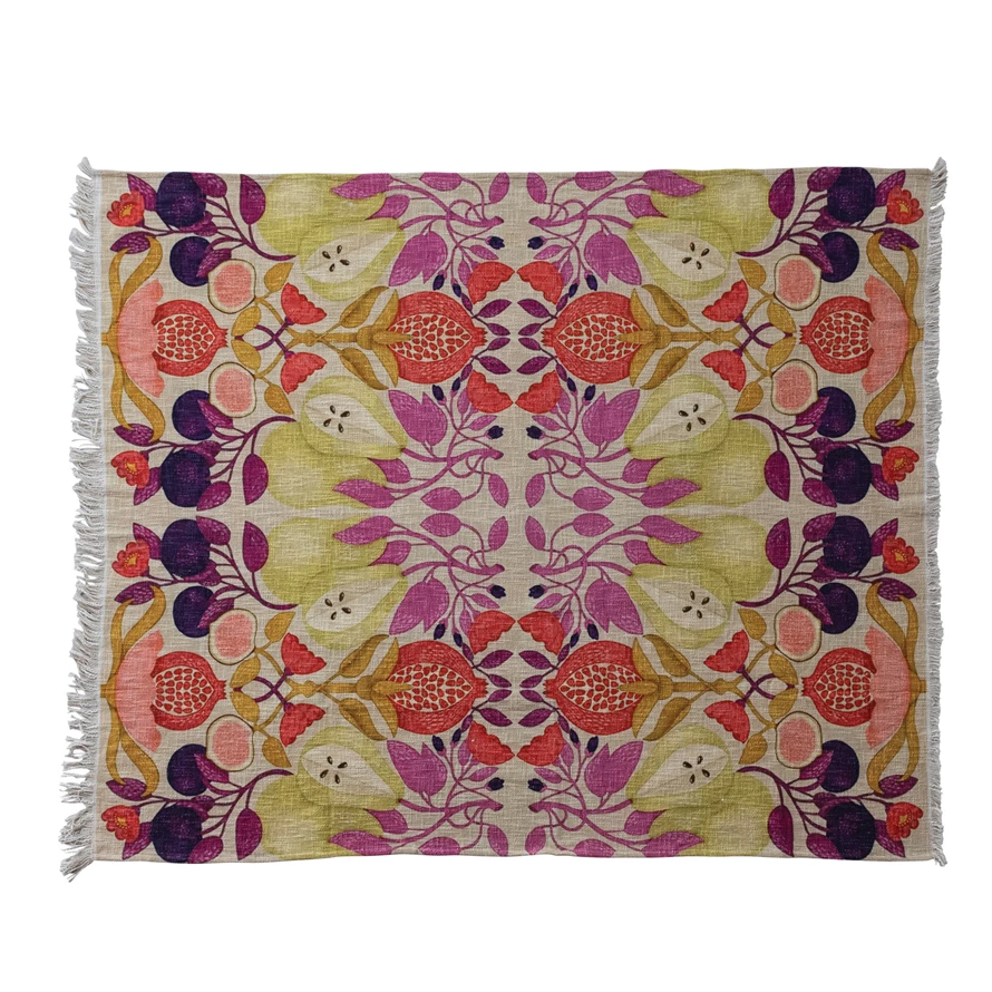 Cotton Slub Printed Throw with Seasonal Fruit Pattern & Eyelash Fringe
