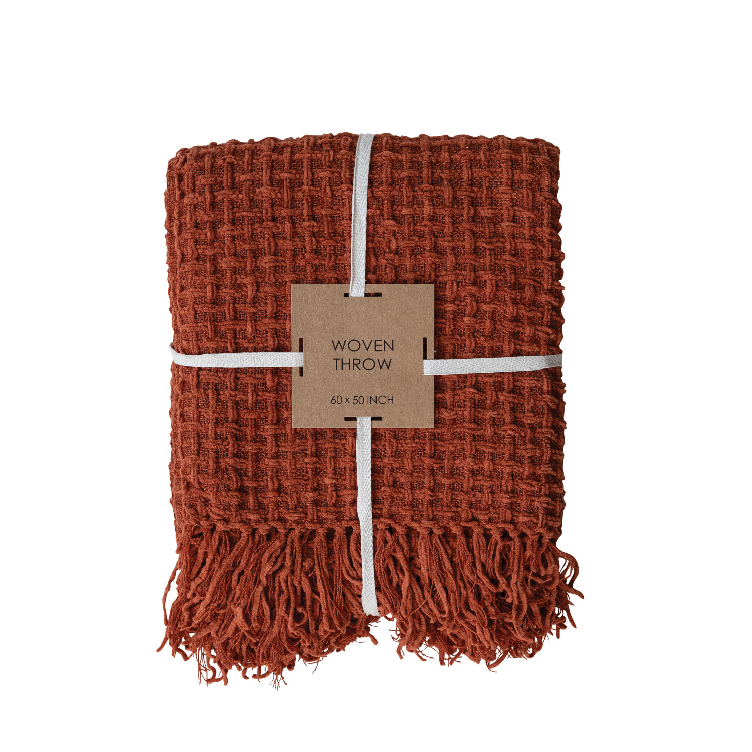 Catalog Name: 60"L x 50"W Woven Fabric Chenille Waffle Weave Throw w/ Fringe, Rust Color