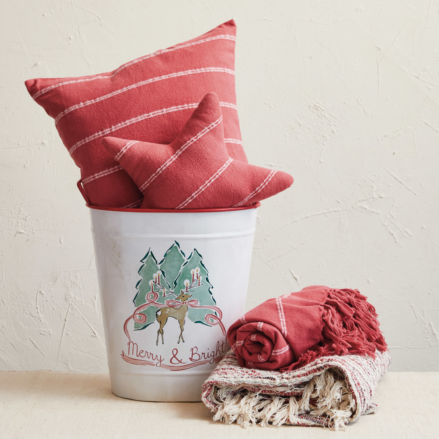 Woven Cotton & Wool Throw w/ Stripes & Fringe, Multi Color