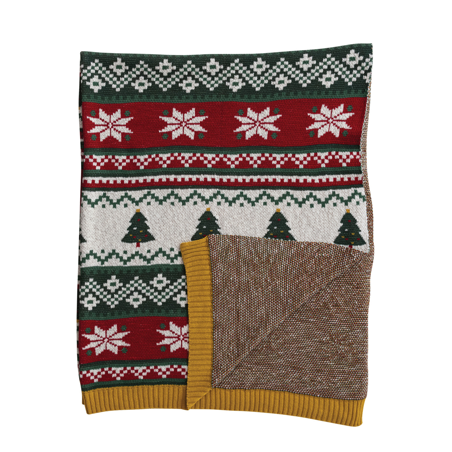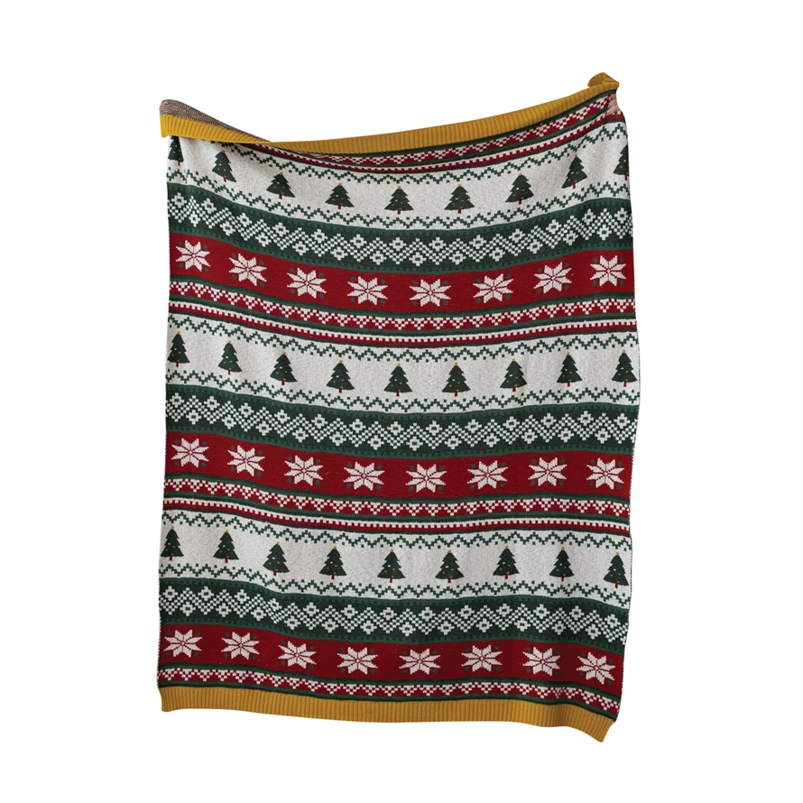 Cotton Knit Throw with Seasonal Fair Isle Pattern