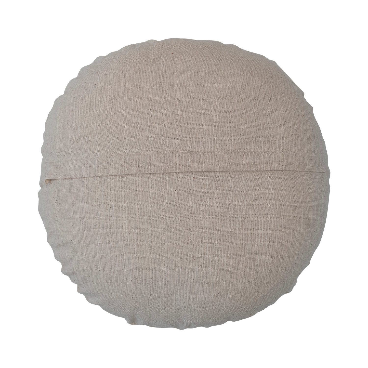 Catalog Name: 16" Round Cotton Slub Printed Pillow w/ Embroidery "Happy Holidays", Multi Color
