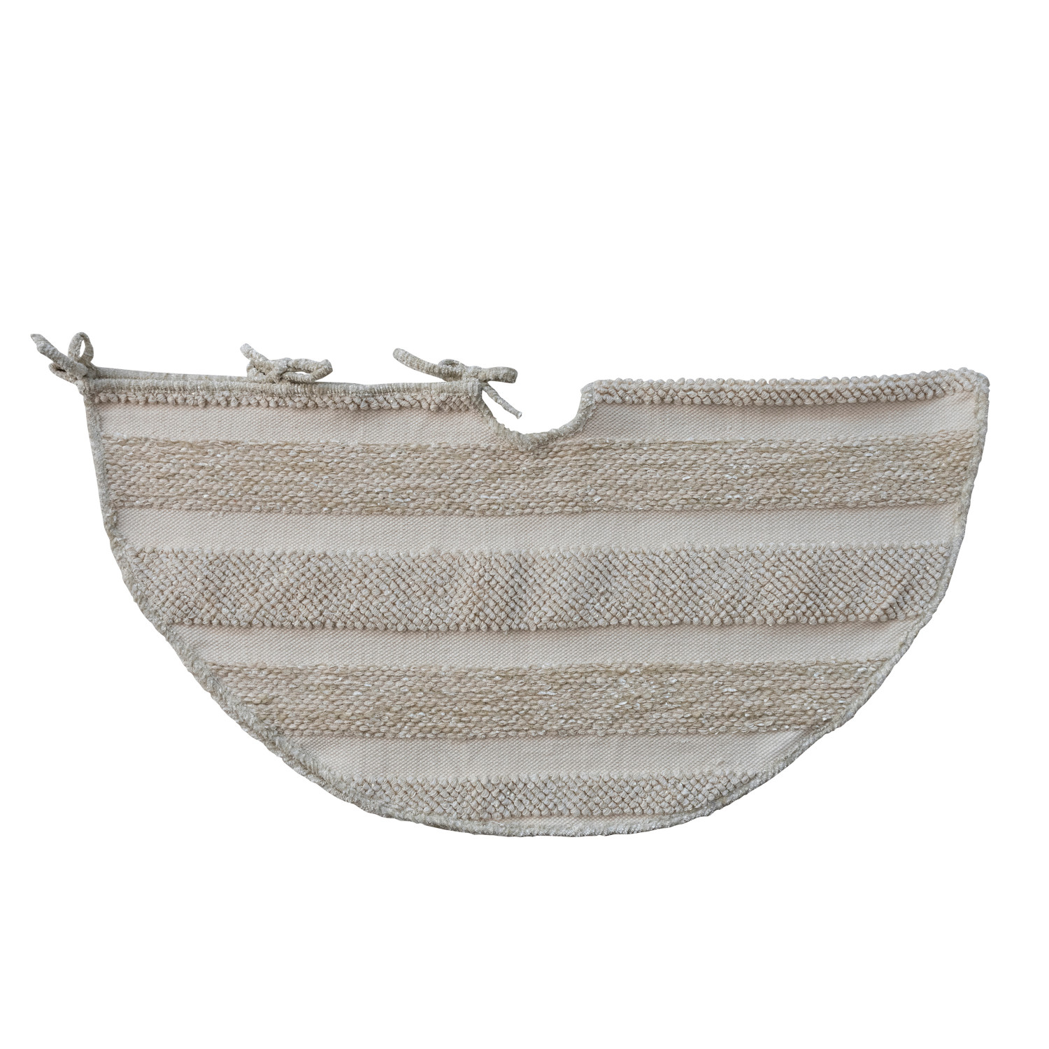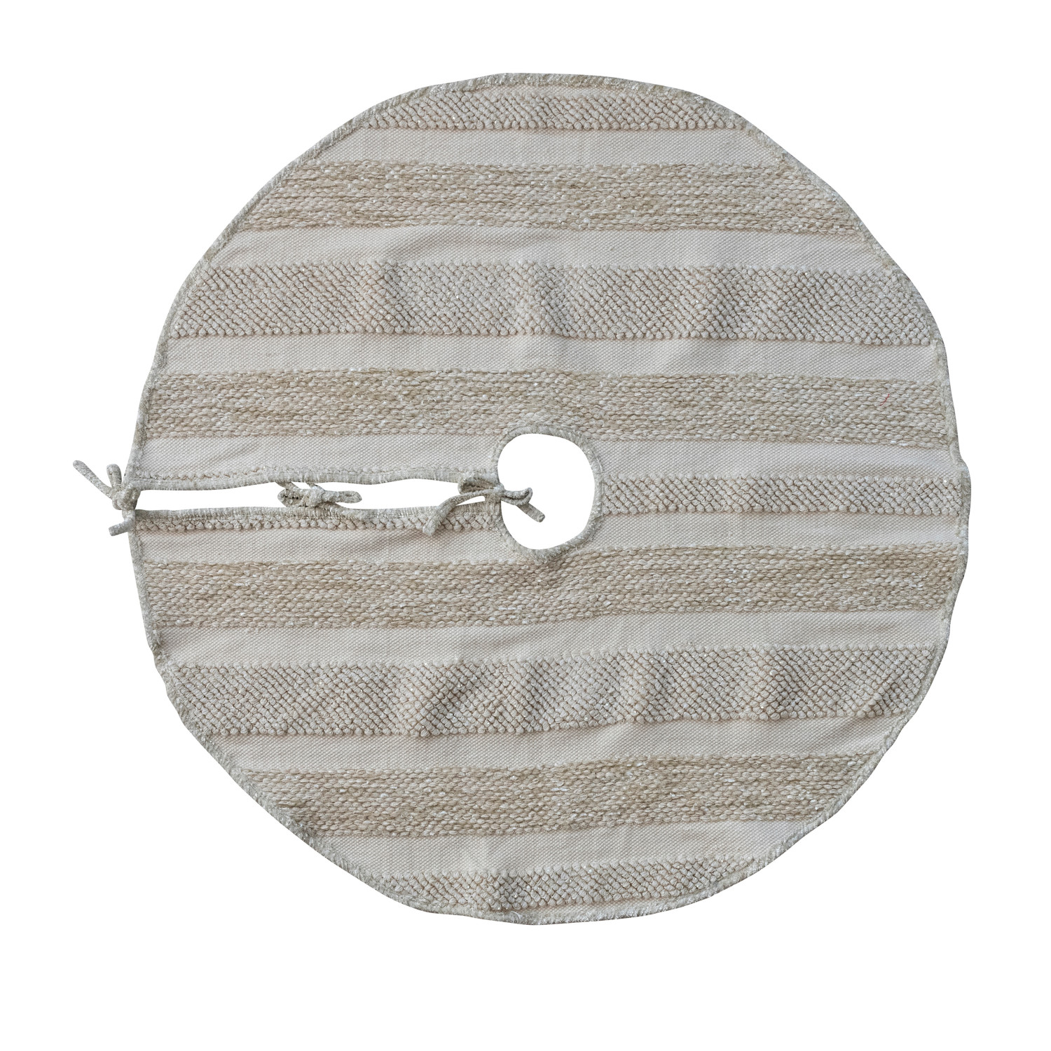 Catalog Name: 48" Round Woven Cotton & Fabric Blend Striped Tree Skirt w/ Metallic Gold Thread Embroidery & Ties, Natural