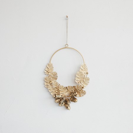 Woven Cotton & Fabric Blend Striped Stocking with Metallic Gold Thread Embroidery & Fringe