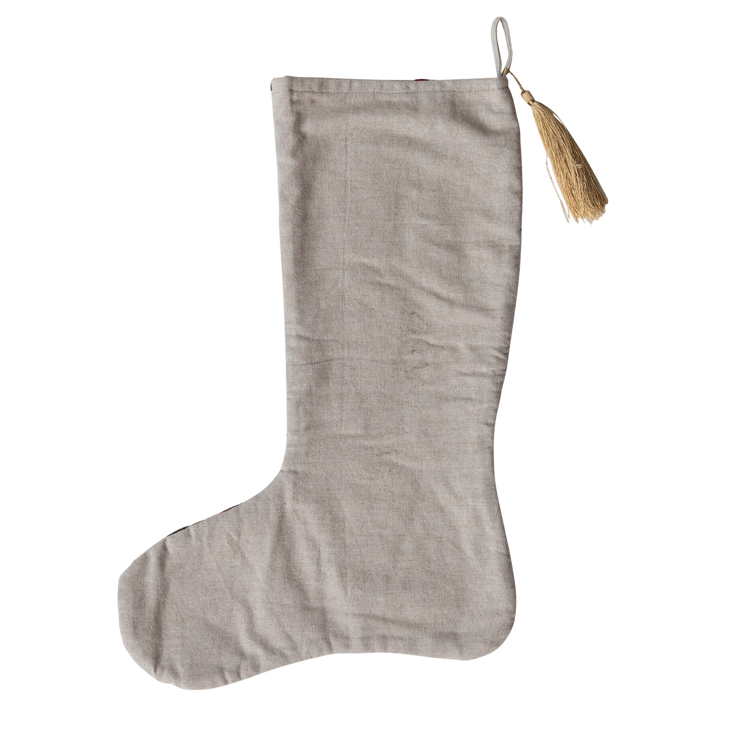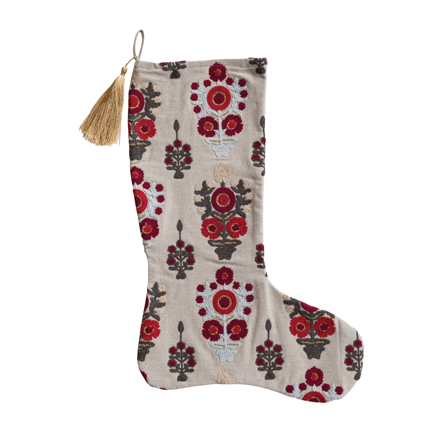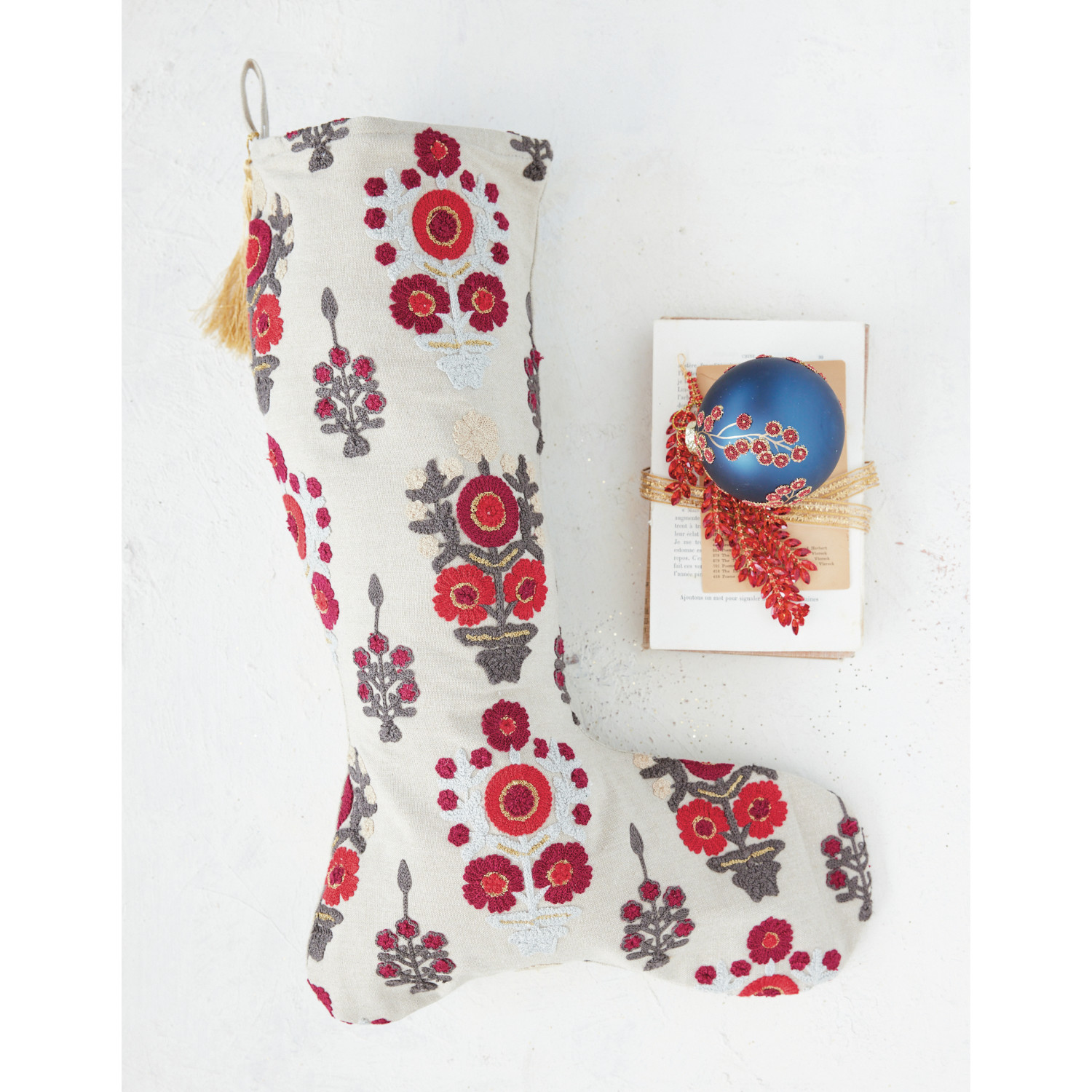 Catalog Name: 20"H Cotton Chambray Stocking w/ Embroidered Floral Pattern, Multi Color