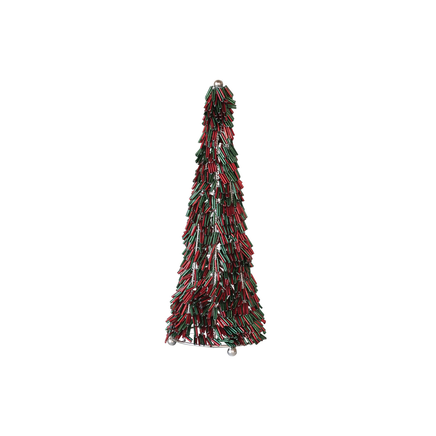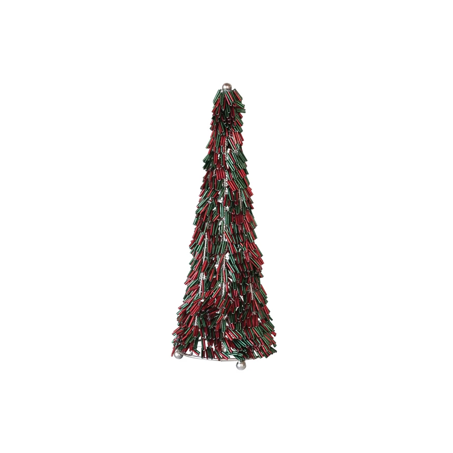 Catalog Name: 3-1/2" Round x 10-3/4"H Metal & Glass Beaded Christmas Tree, Red & Green