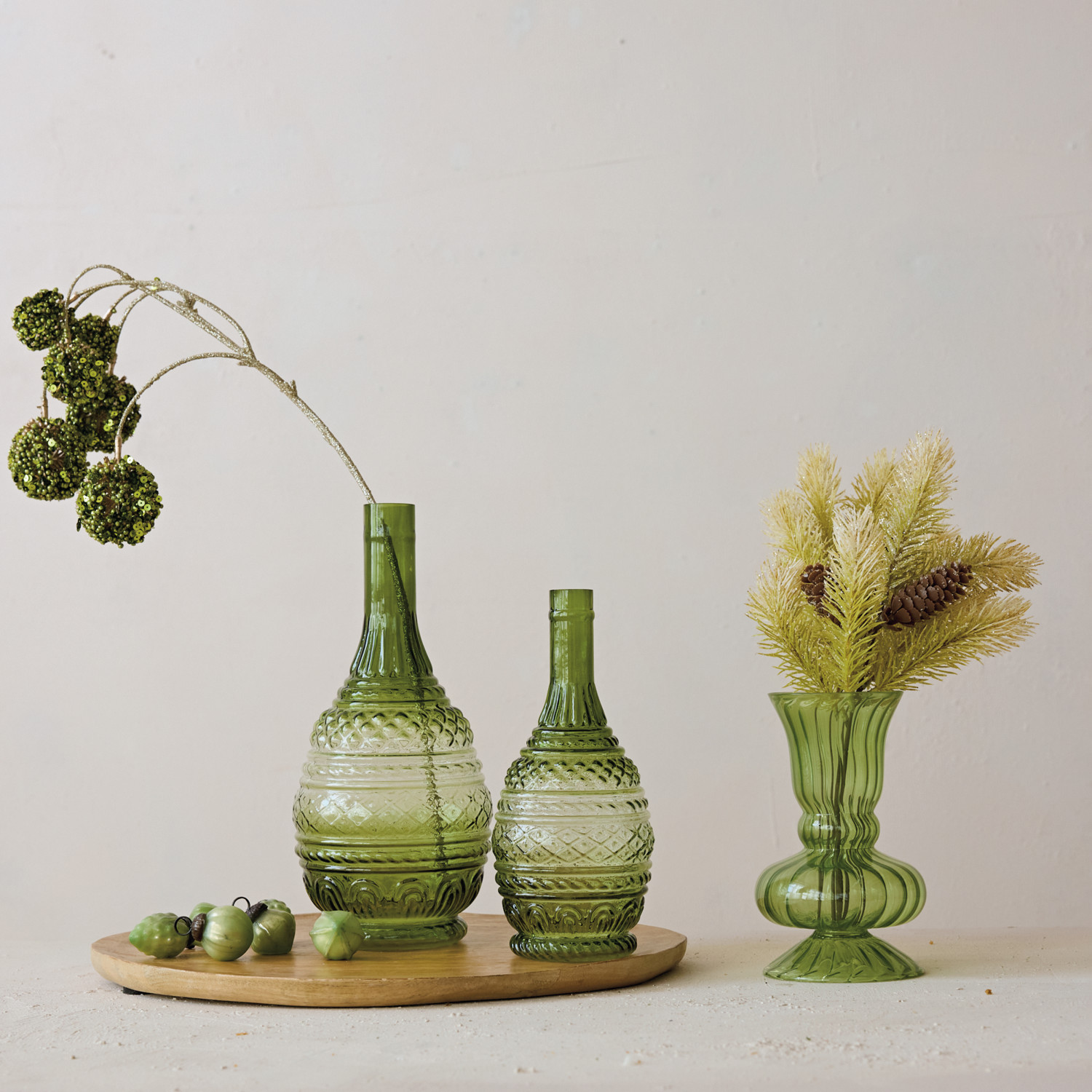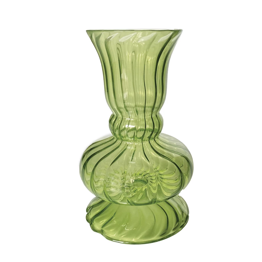 Catalog Name: 3-3/4" Round x 6-1/4"H Hand-Blown Fluted Glass Vase, Green