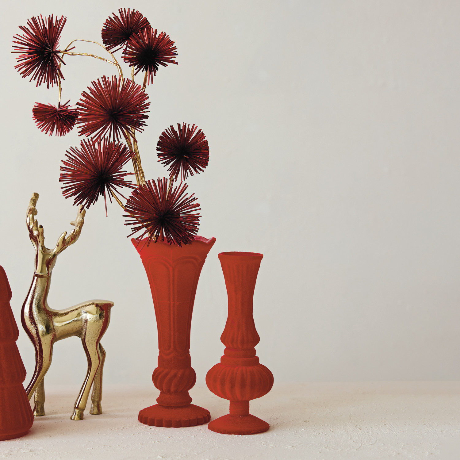 Catalog Name: 2-3/4" Round x 7-1/4"H Embossed Flocked Glass Footed Vase, Red