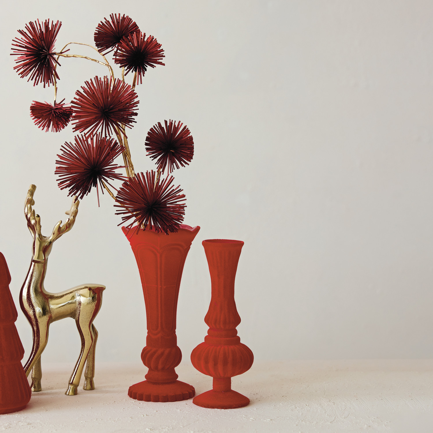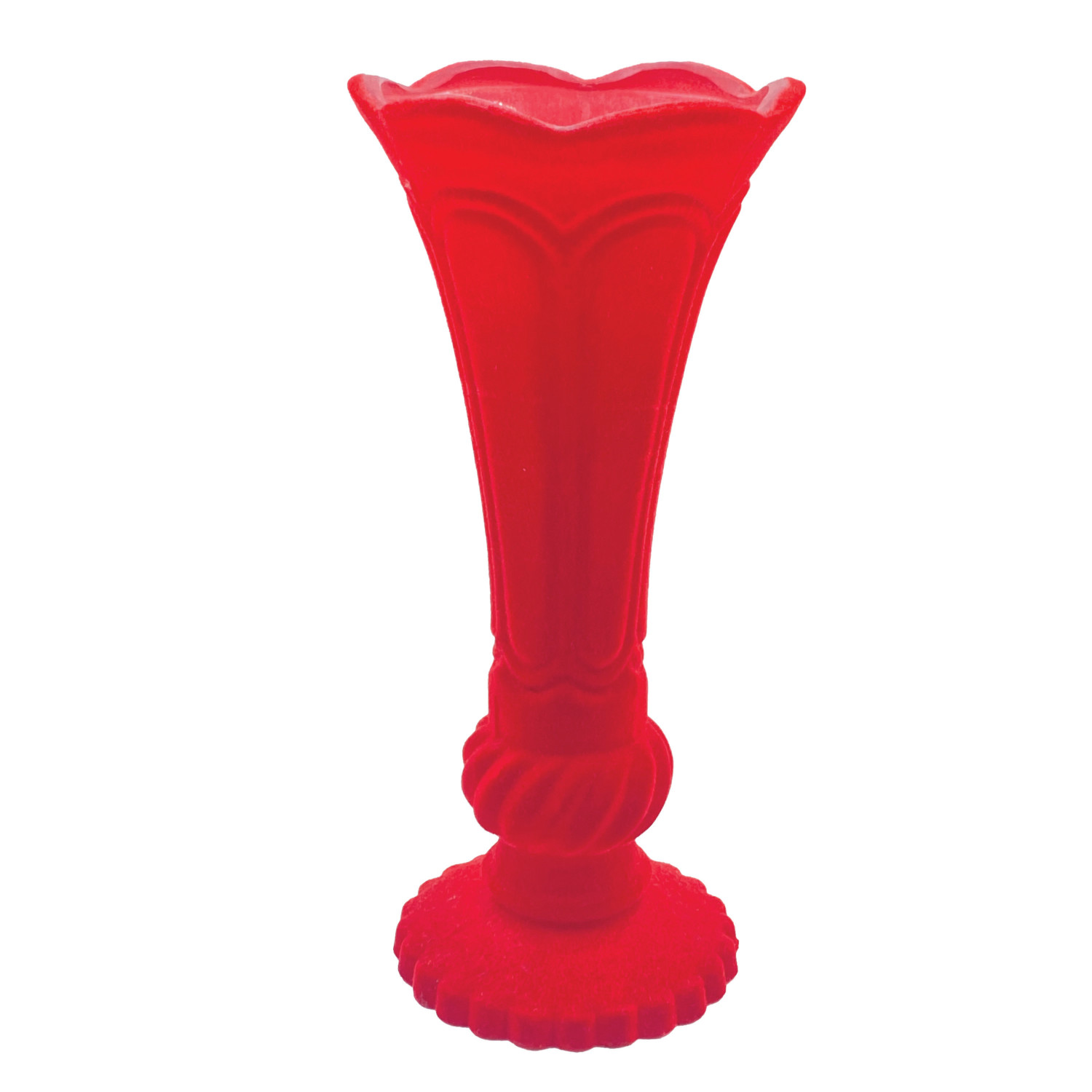 Embossed Flocked Glass Footed Vase with Scalloped Rim, Red