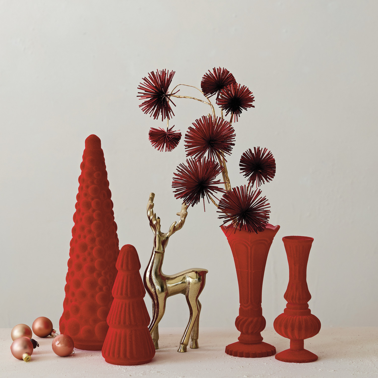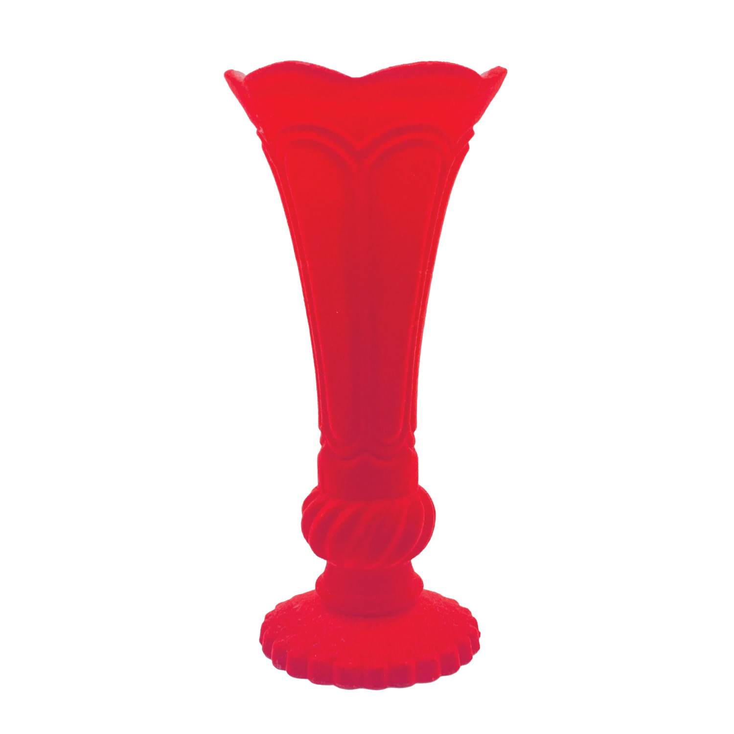 Catalog Name: 2-3/4" Round x 7-3/4"H Embossed Flocked Glass Footed Vase w/ Scalloped Rim, Red