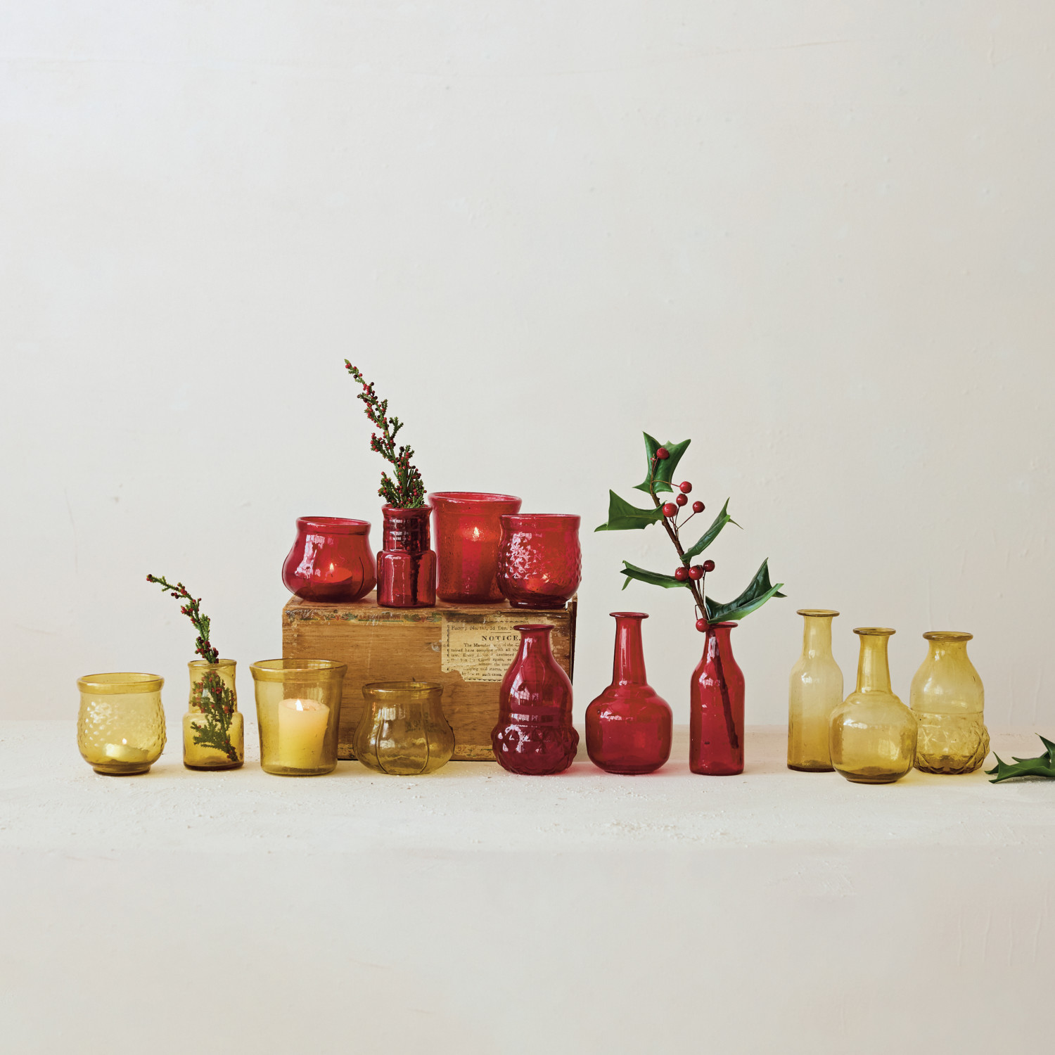Catalog Name: 3-1/2"H - 5"H Hand-Blown Glass Vase, Red, 4 Styles