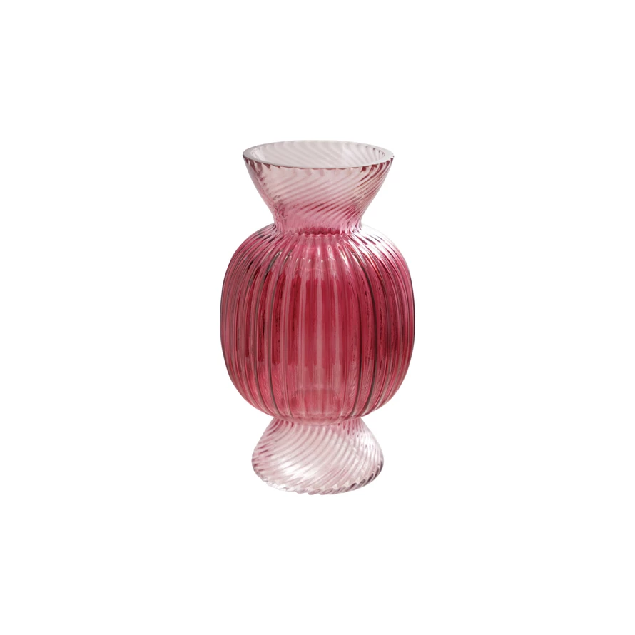 Catalog Name: 4-1/2" Round x 7-1/2"H Glass Fluted Candy Shaped Vase, Pink