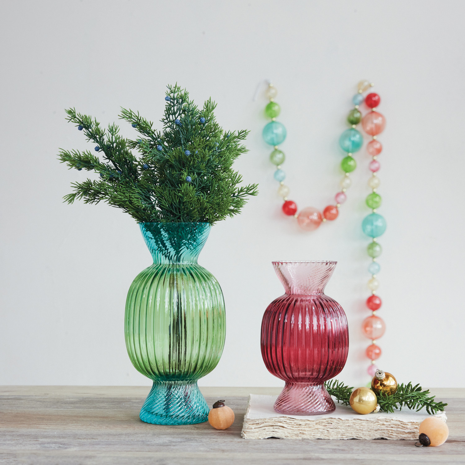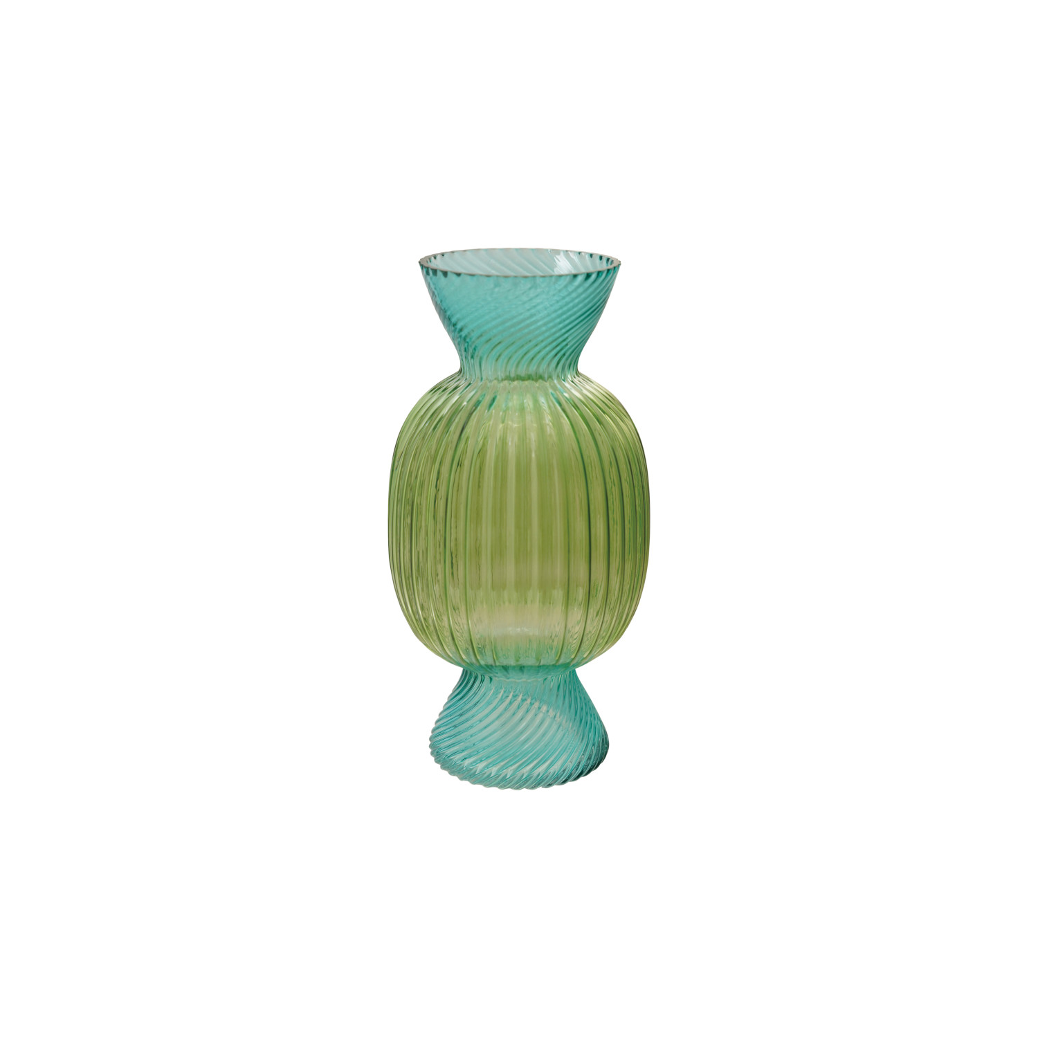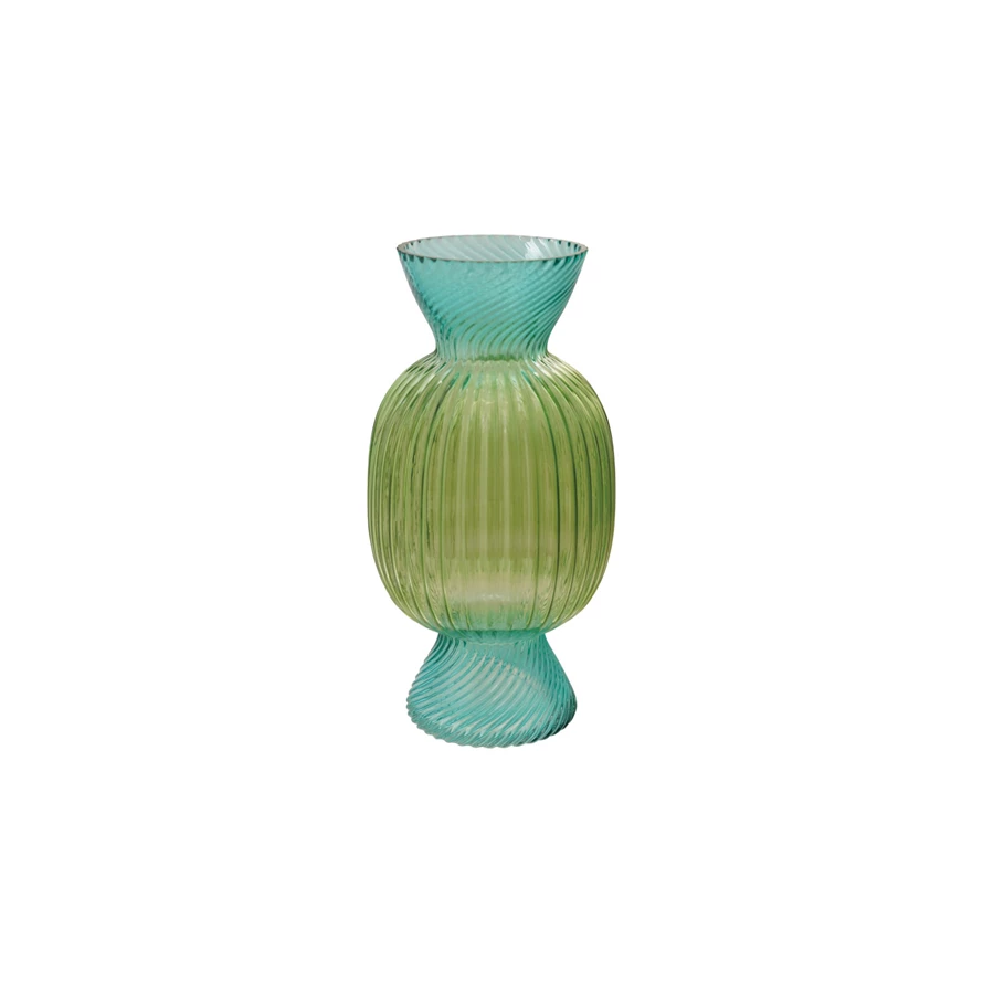 Glass Fluted Candy Shaped Vase, Green & Blue