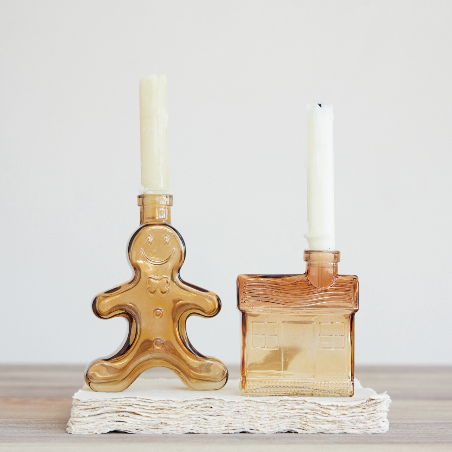 Glass Gingerbread Shaped Taper Holder/Vase, Brown