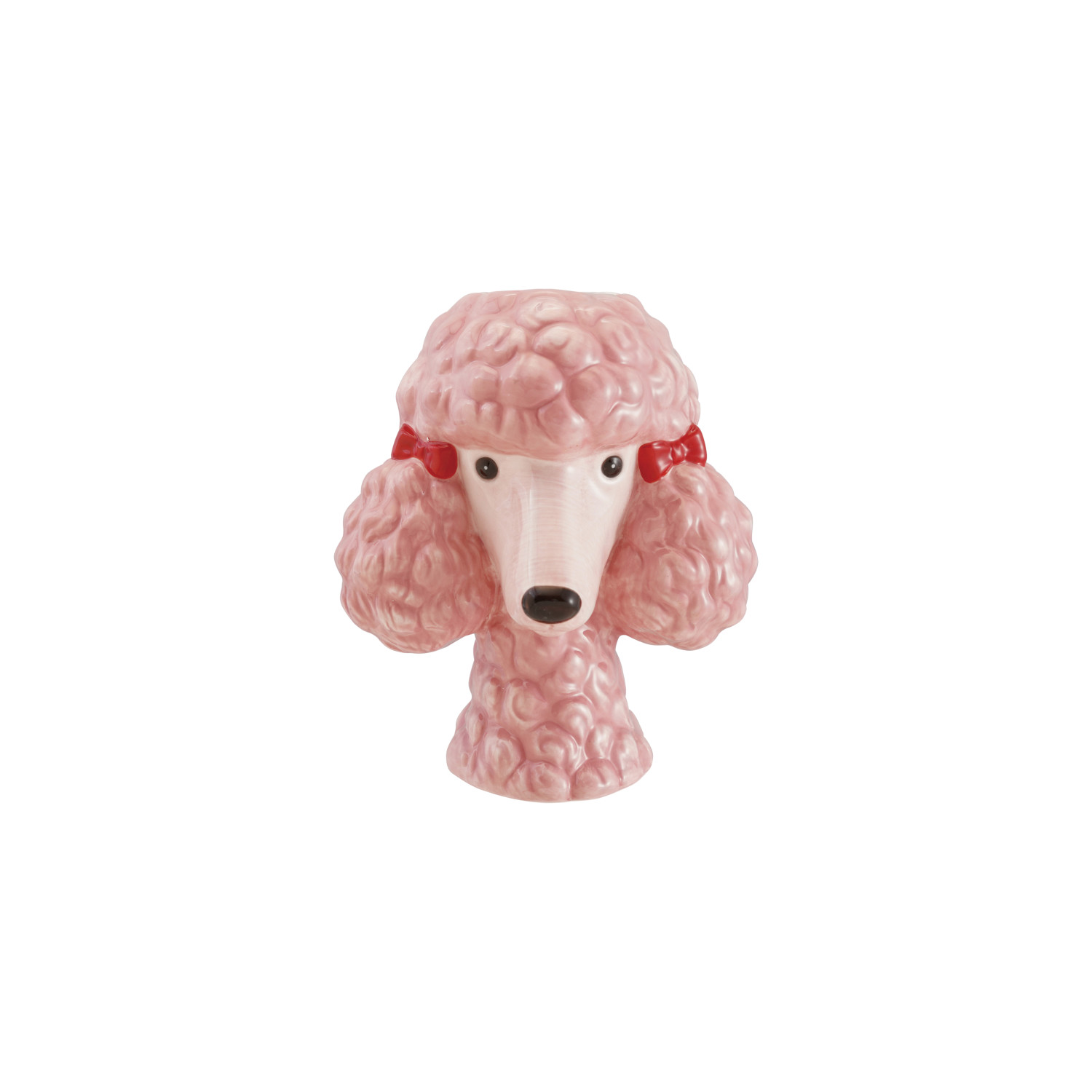 Ceramic Poodle Head Shaped Vase with Bows, Pink, Red & Black