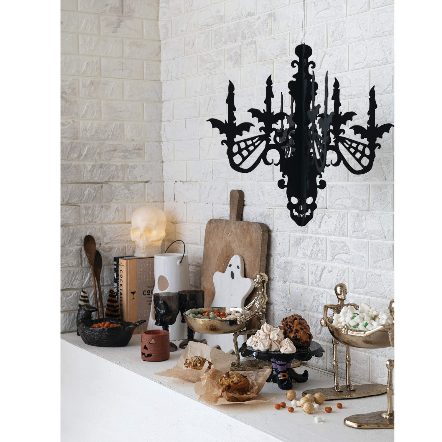 Hanging Interlocking MDF Chandelier with Bats & Spider Webs, Black
