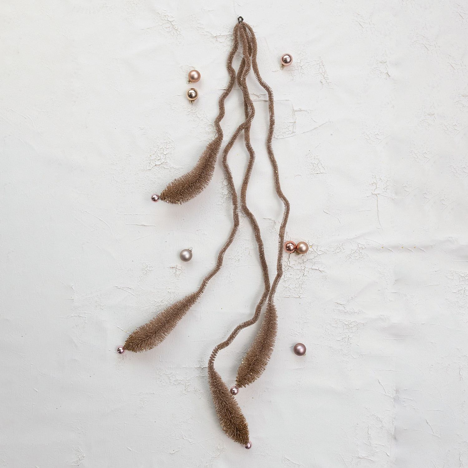 Catalog Name: 57"H Plastic Bottle Brush & Wire Garland w/ Balls, Champagne Finish