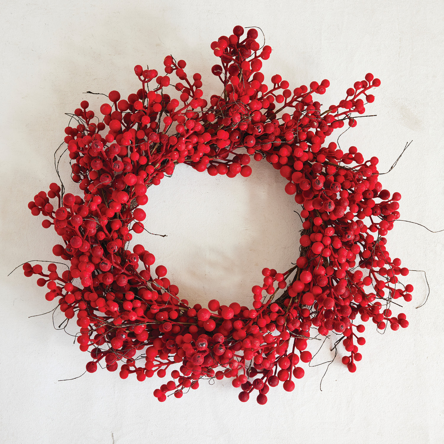 20" Round Faux Flocked Red Berry Wreath