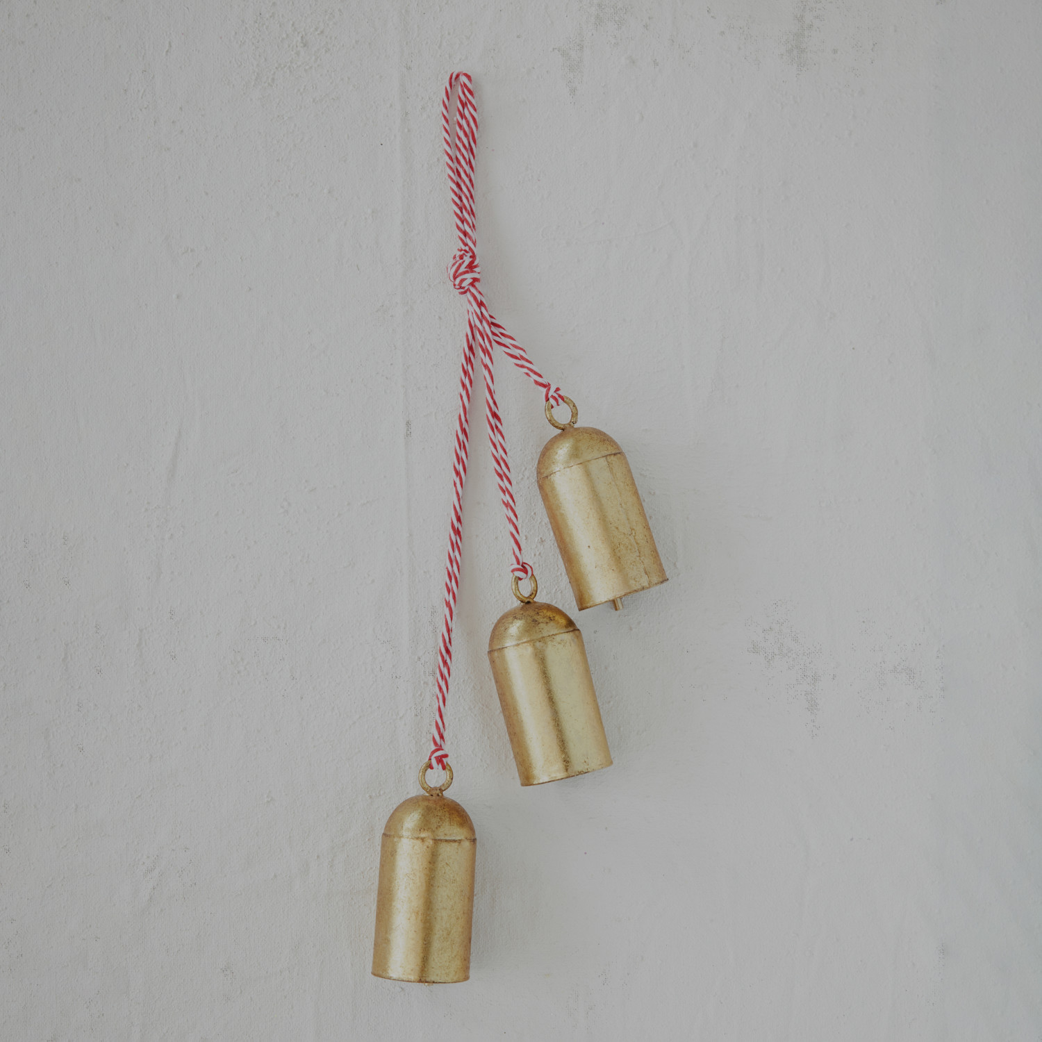Hanging Metal Bells with Red & White Cord, Gold Finish